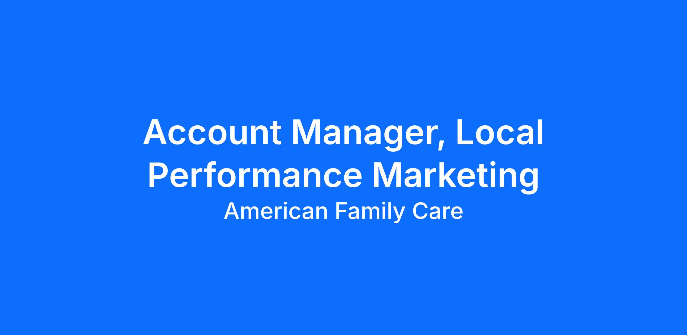 The AdWorks Account Manager, Local Performance Marketing, is responsible for managing a portfolio of franchisee accounts and driving measurable business growth through performance marketing. AFC AdWorks is American Family Care’s centralized local marketing program, designed to drive performance, patient acquisition, and revenue growth for franchisees through data-driven digital advertising.