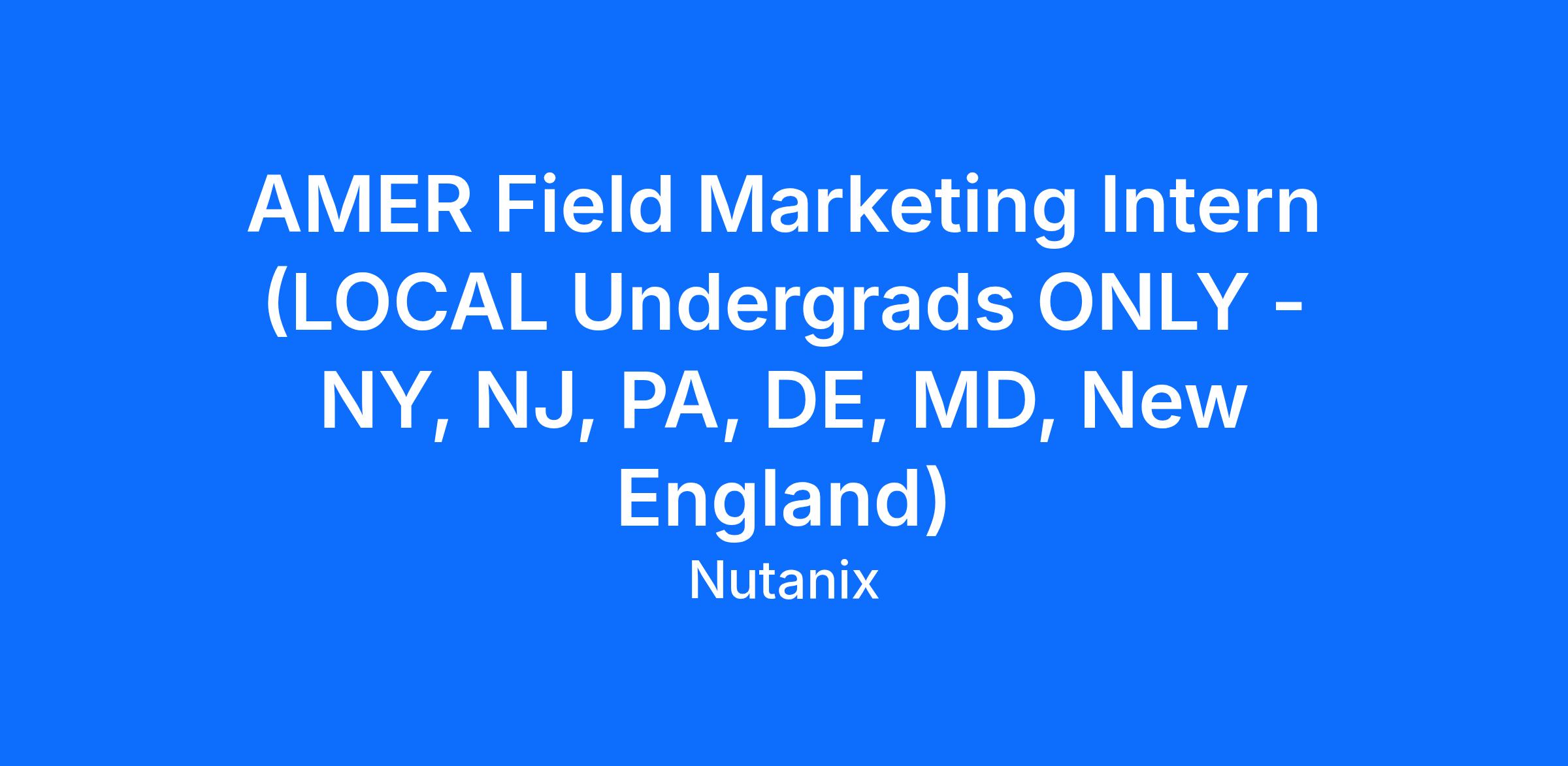Are you a proactive and innovative thinker with a passion for marketing and a desire to drive real business impact? If so, you'll thrive as a Field Marketing Intern at Nutanix, where you'll gain hands-on experience through engaging projects, collaborate with talented professionals across teams, and help shape impactful marketing strategies for our dynamic AMER Field Marketing team.