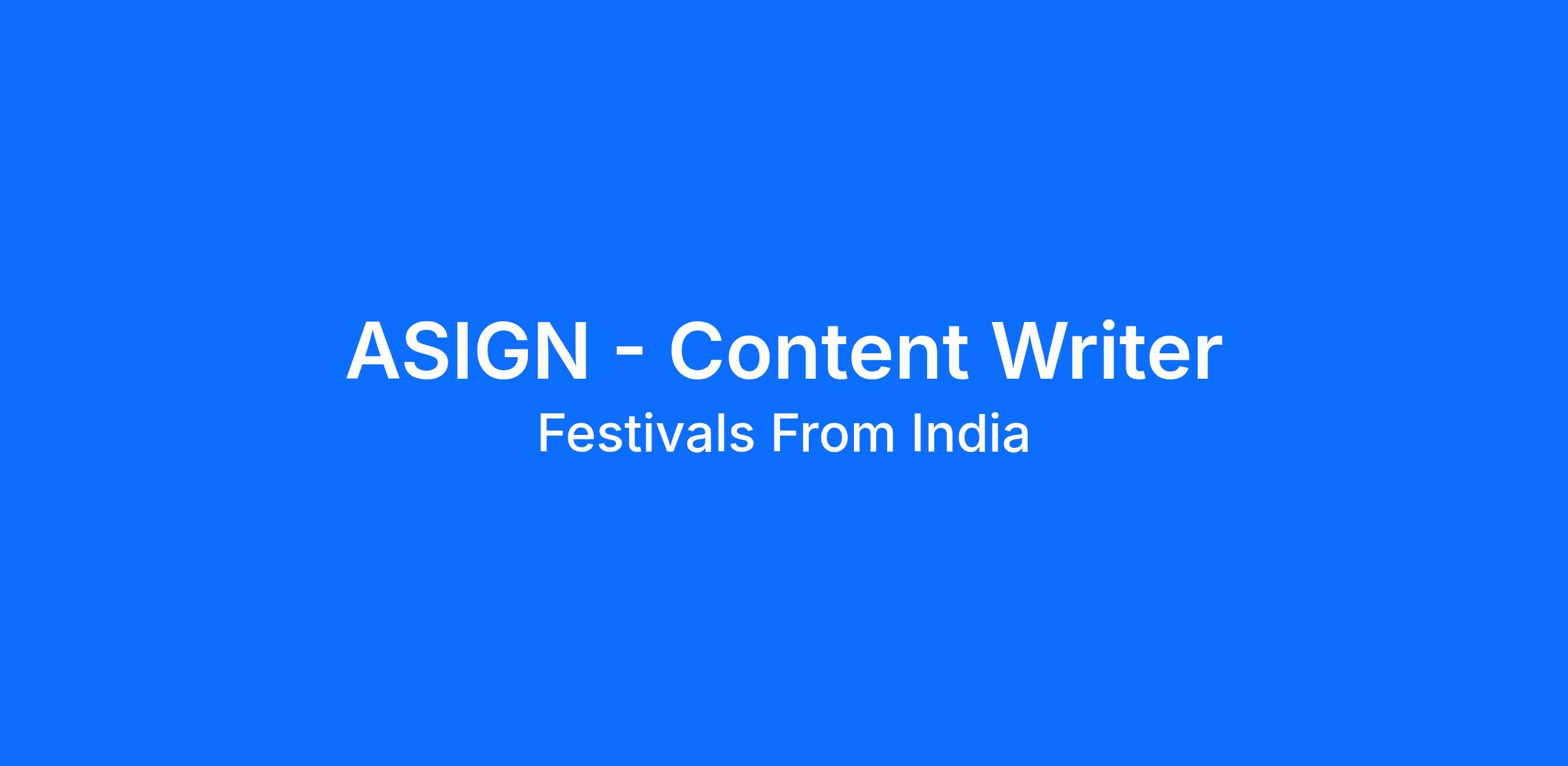 Festivals From India is hiring on behalf of their client ASIGN<\/b> for a Content Writer<\/b> to join the Communications Team. The role involves creating engaging content across blogs, social media, newsletters, and marketing materials, with a focus on art and culture. Ideal for candidates with 3β5 years of writing experience and a flair for storytelling.<\/span> <\/div>
