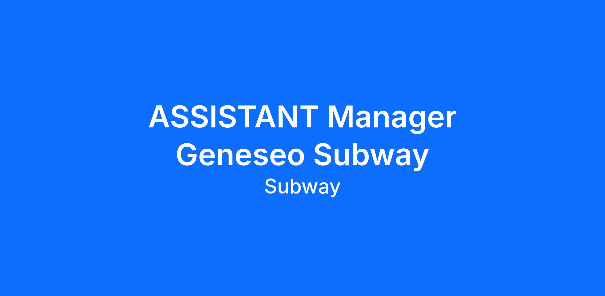 Are you looking for a delicious and fun working environment? If so, we have an immediate and time-sensitive opening for an Assistant Manager at Subway!