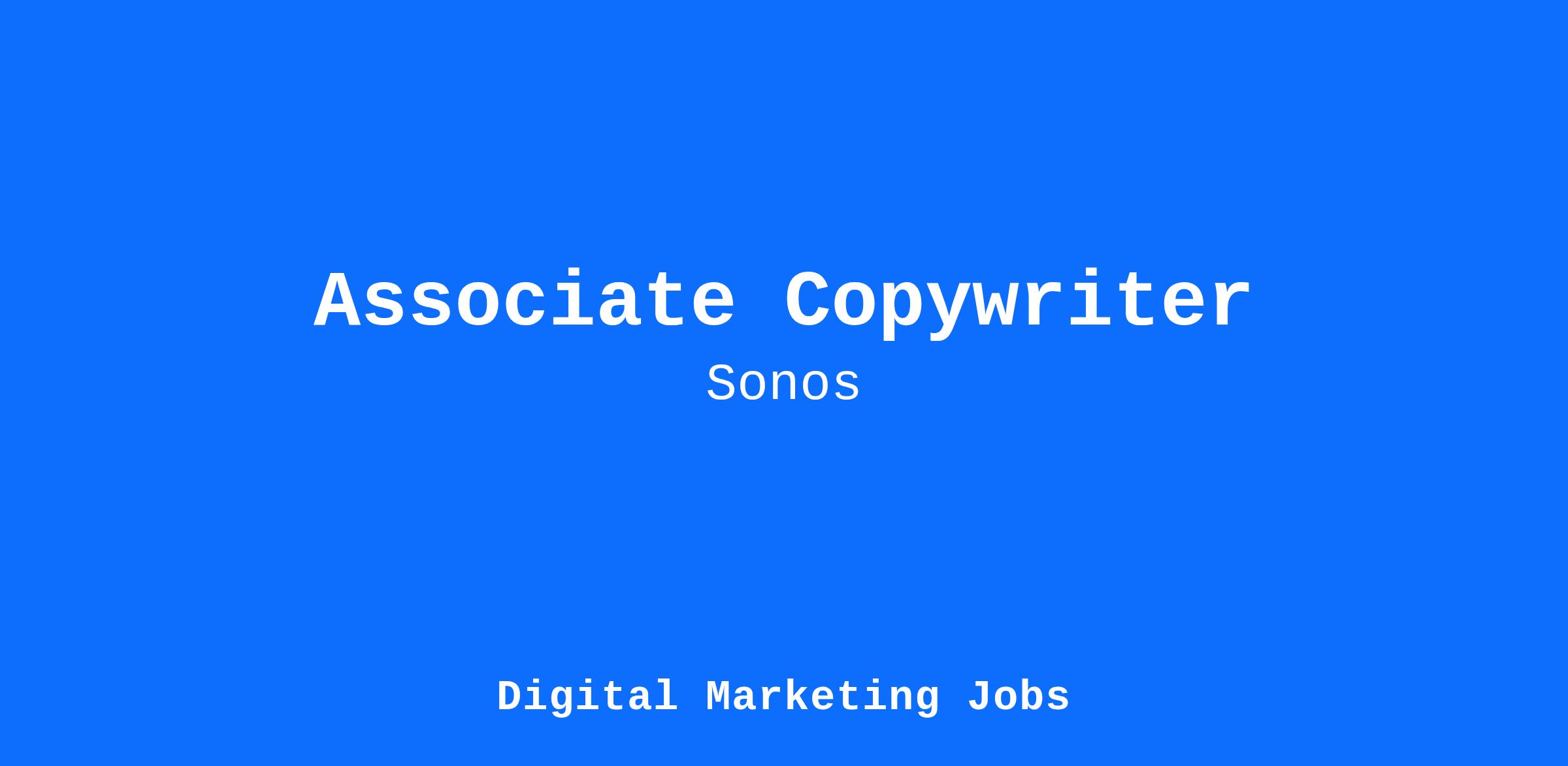 As an Associate Copywriter, you’ll help bring the Sonos brand voice to life. You’ll collaborate closely with designers, marketers, and product partners to craft thoughtful, inspiring copy that strengthens our brand and connects with audiences. You’ll join a team that values creativity, clarity, and collaboration, where every word shapes how people experience Sonos.