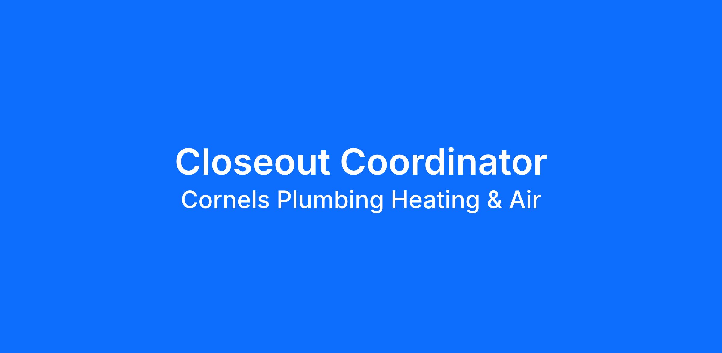 We are seeking a Closeout Coordinator to join our team.