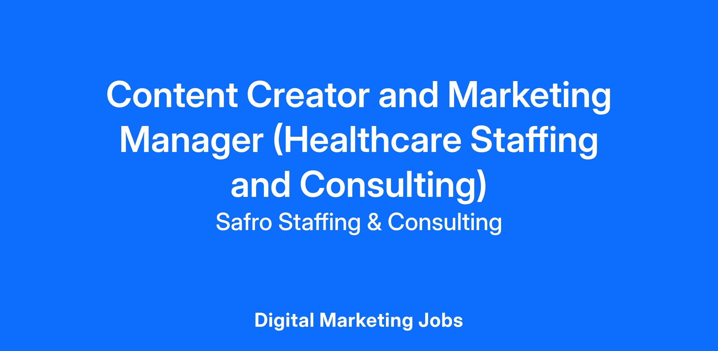 Content Creator and Marketing Manager (Healthcare Staffing and Consulting)