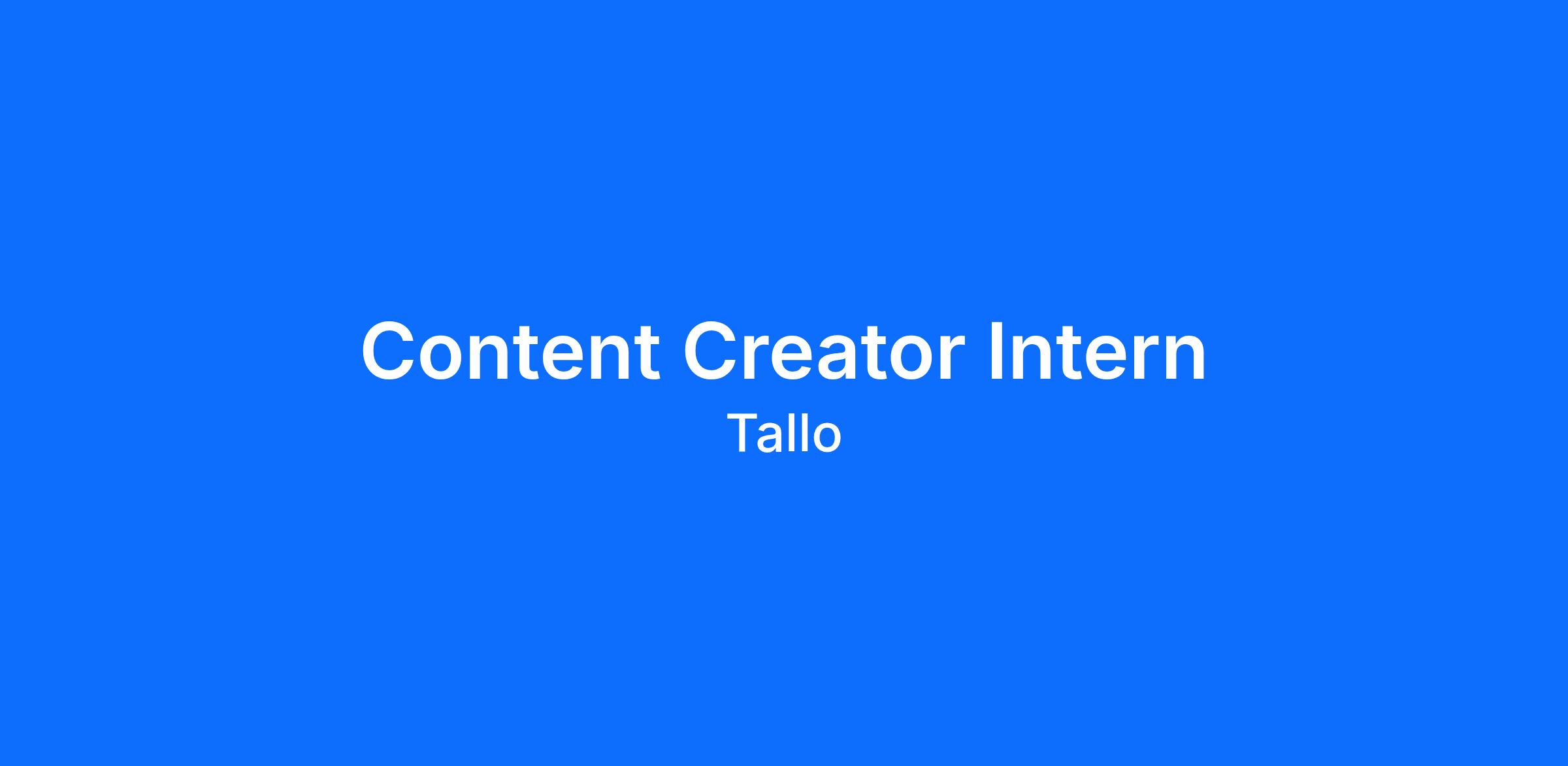SUMMARY: As a Content Creator Intern, you'll help create content for Tallo's social media and support video/design projects and campaigns.