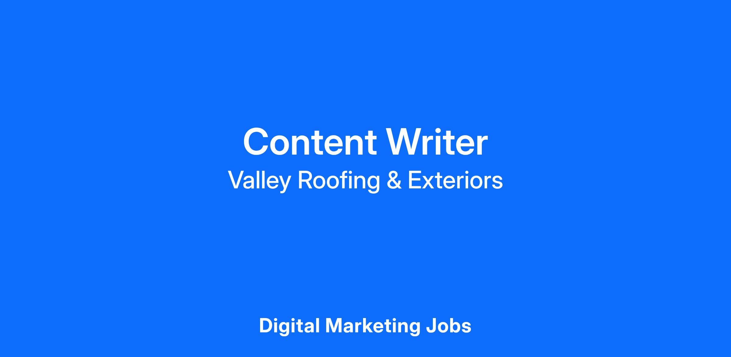 Valley Roofing is seeking a Content Writer to own our inbound marketing and content strategy. Your primary goal: drive qualified traffic, leads, and sales through high-performing web content that answers customer questions and positions Valley Roofing as the authority in roofing, storm restoration, and home exterior services.
