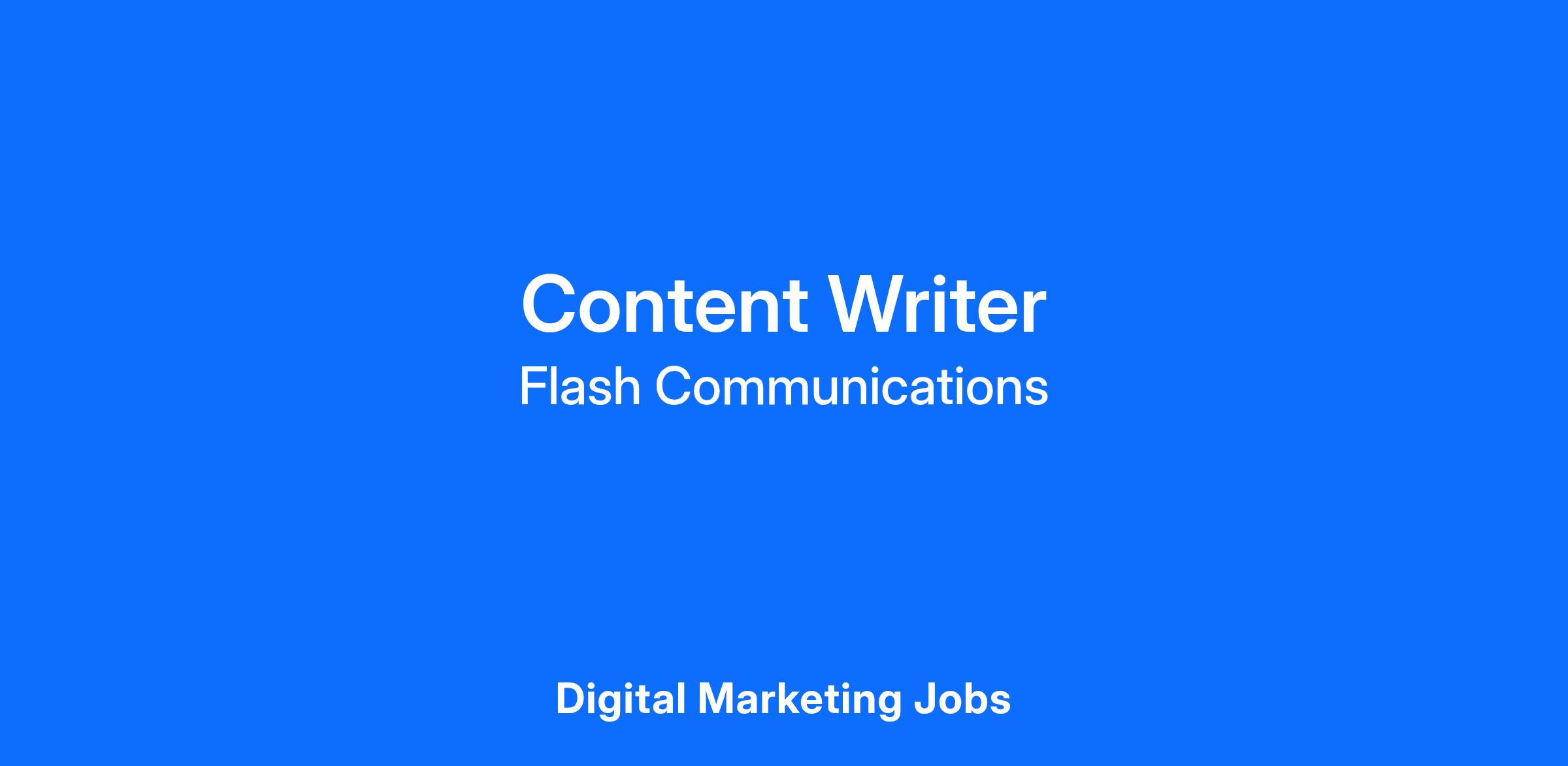 Send your resume and 2–3 writing samples to hr@flashdigital.in with the subject line “Content Writer – Application”.
