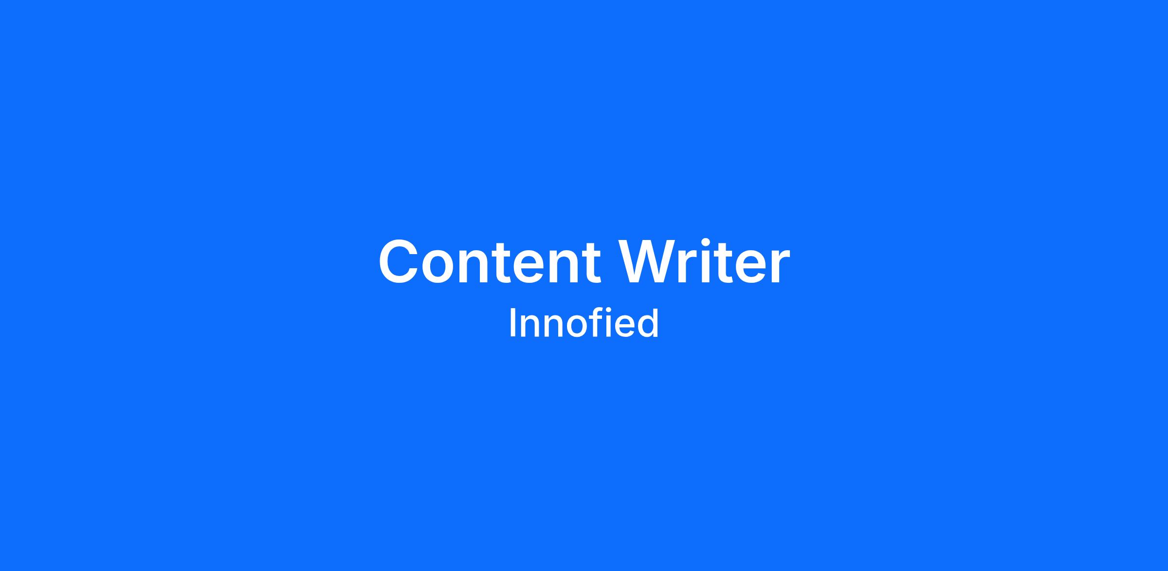 Innofied is looking to hire a Content writer who will be responsible for content marketing activities of our company.