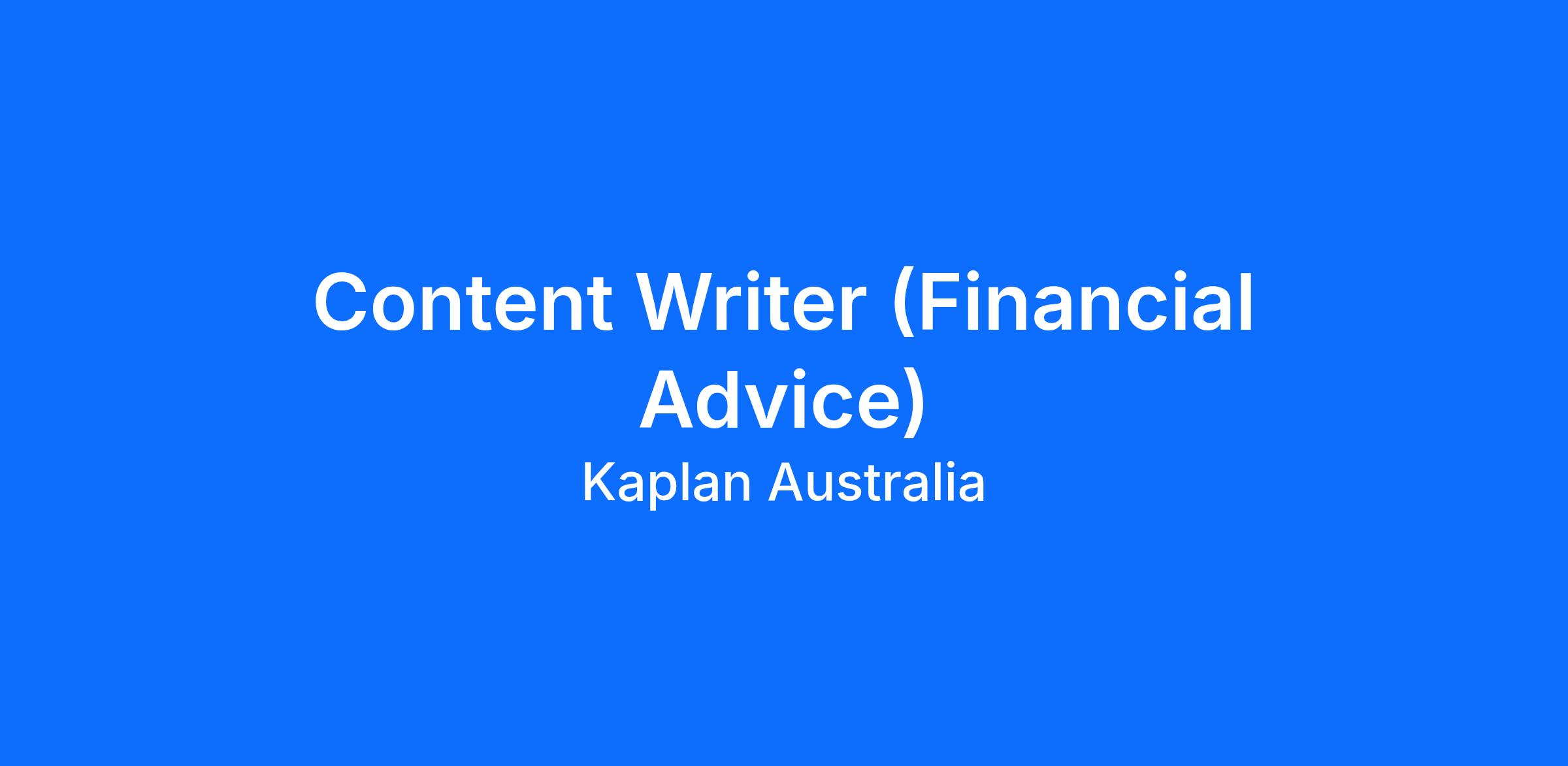 The position contributes to researching, writing, conducting in-field interviews, working with external subject matter experts, editing and working with instructional designers and multimedia producers to create multimedia content (including videos and motion graphics). The Content Writer (Financial Advice) also develops interactive activities for inclusion in content and formal assessments. Content and assessments are required to be developed to an appropriate level and timeline to meet production schedules.