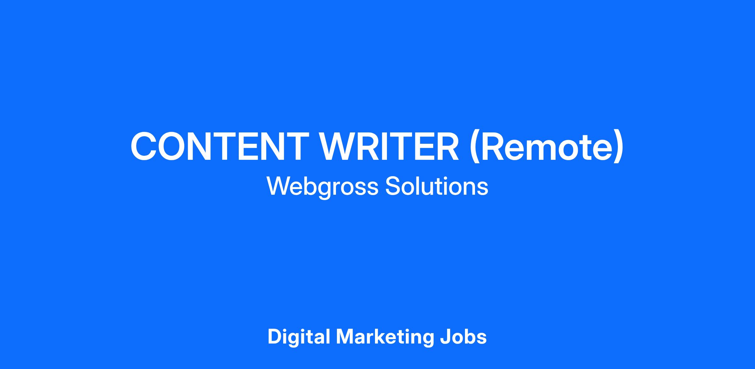 If you are a data-informed writer who combines creativity with SEO discipline and enjoys delivering measurable results, we encourage you to apply. The role is with Webgross Solutions Pvt Ltd and offers remote work across India.