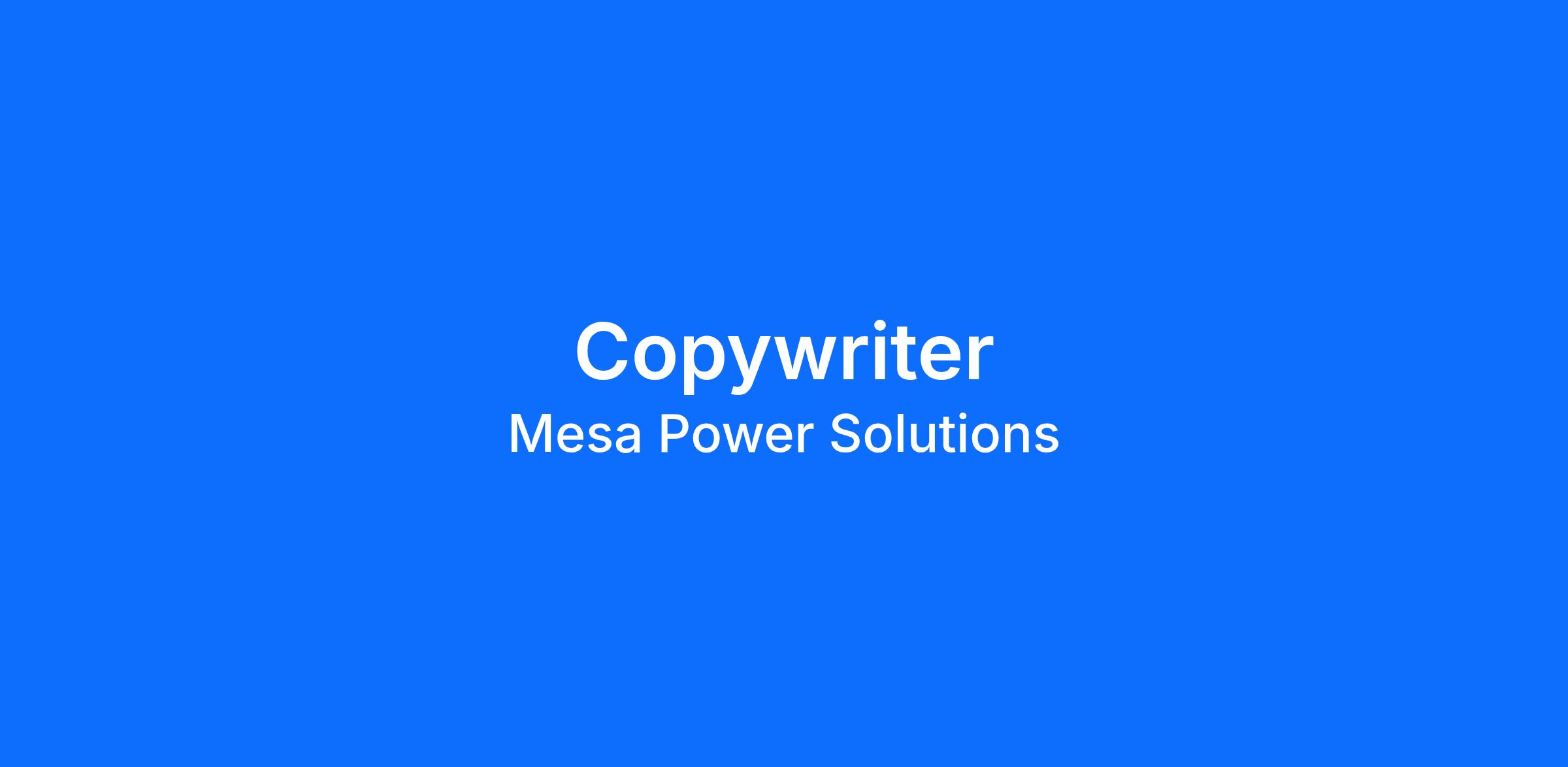 Mesa Power Solutions is an equal opportunity employer. Qualified applicants are considered for positions without regard to race, color, religion, sex, national origin, age, citizenship status, marital status, medical condition, physical or mental disability or any other legally protected status. EOE/M/F/D/V