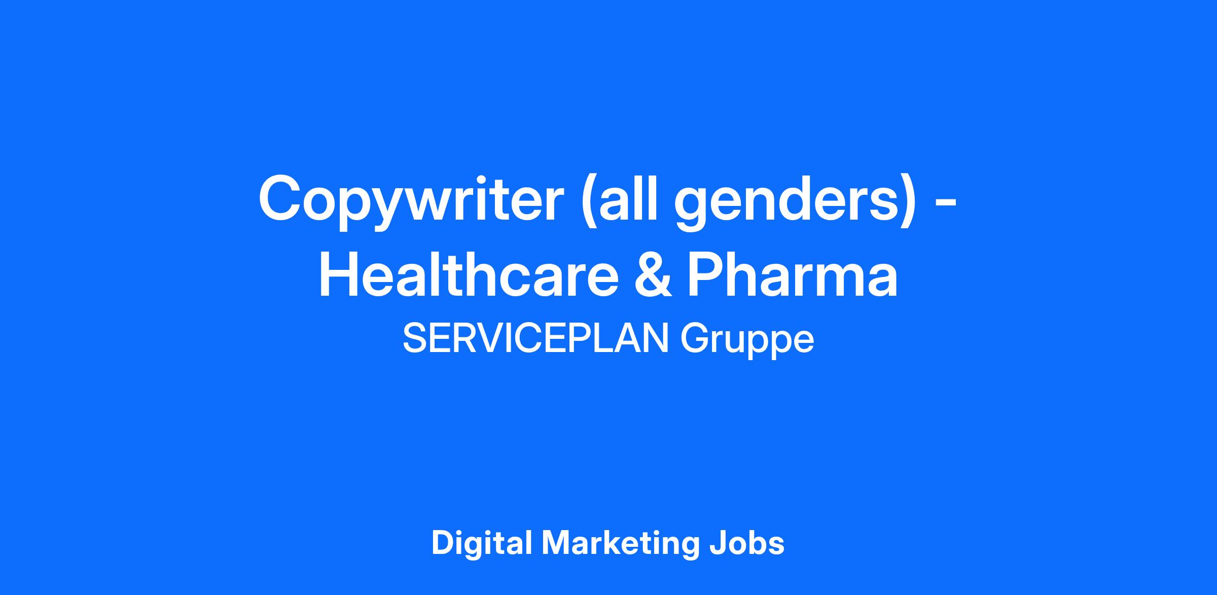 Super! Denn zum nächstmöglichen Zeitpunkt suchen wir an unserem Standort Berlin in Vollzeit einen Konzeptioner / Copywriter (all genders) für Serviceplan Content Health.
