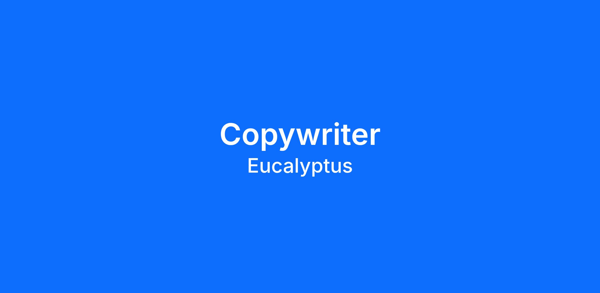 This is your opportunity to join EUC as we rapidly expand our team and be a key player in shaping the future of healthcare. Join our team as a Copywriter at Eucalyptus and play a pivotal role in developing and executing creative campaigns across Meta, YouTube, websites, email, out-of-home, and TV.