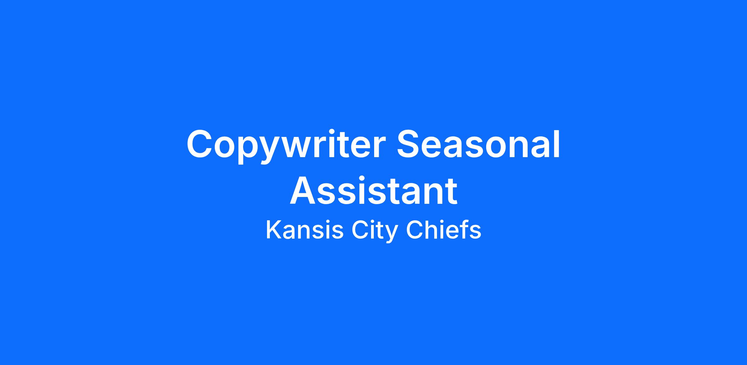 JOB SUMMARY:We are looking for a team player to join the Chiefs in-house creative team. In this role, you'll wield words for our portfolio of brands on projects including scripts, social, radio reads, stadium events, Chiefs games, web, email, and more. An ideal candidate will be full of ideas, a grammar expert, and a strong collaborator who brings creativity, curiosity, and commitment to supporting the brand voice of one of the premier teams in the NFL.