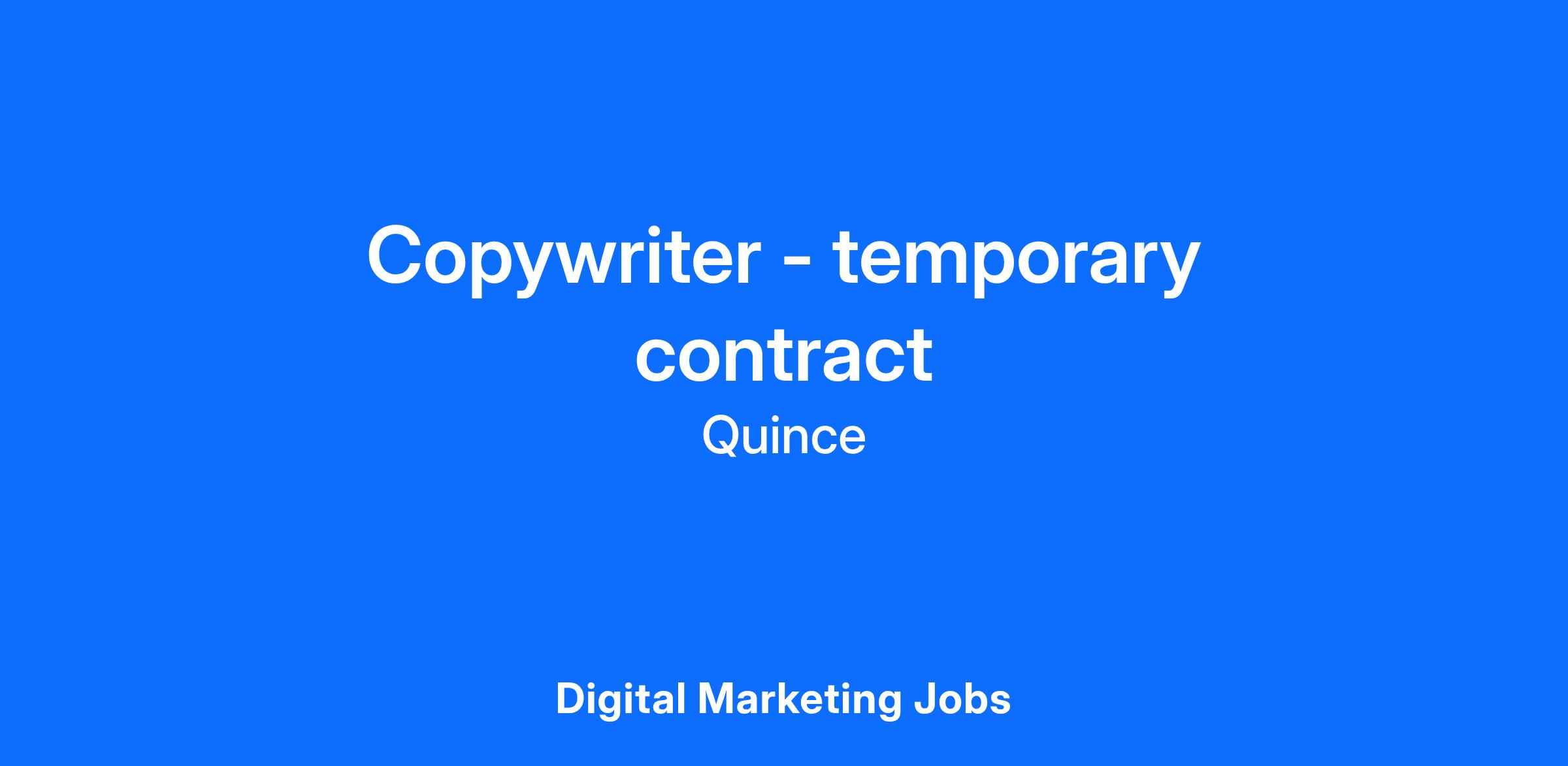 Quince is looking for a Copywriter (Contract) to support our growing content needs across brand and marketing channels. This role is ideal for a nimble, detail-oriented writer who thrives in a fast-paced environment, understands the importance of data-informed copy, and can deliver polished, on-brand work at scale. You’ll be part of the engine behind our emails, SMS, product pages, and more—helping shape how customers experience the Quince voice every day.