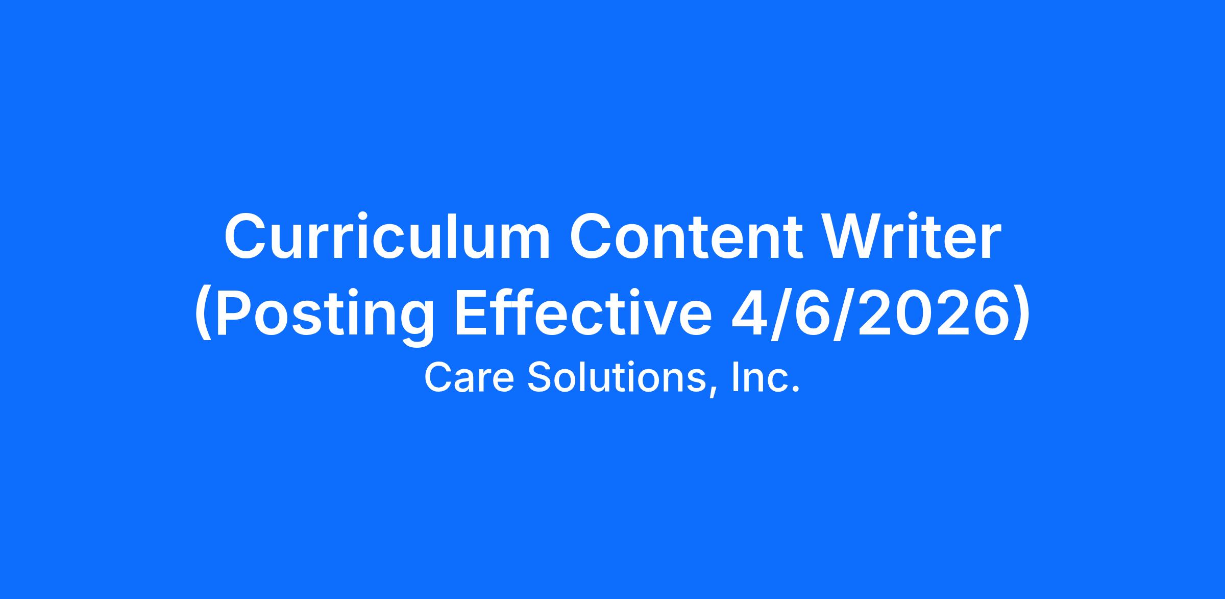 Care Solutions is a mission-driven organization committed to advancing workforce quality in senior and elder care (as well as early childhood education). Through our proprietary Learning Management System (LMS) and standards-driven training initiatives, we support organizations and professionals delivering essential services to others. This role offers the opportunity to contribute to meaningful, scalable education while supporting high-quality workforce development nationwide.