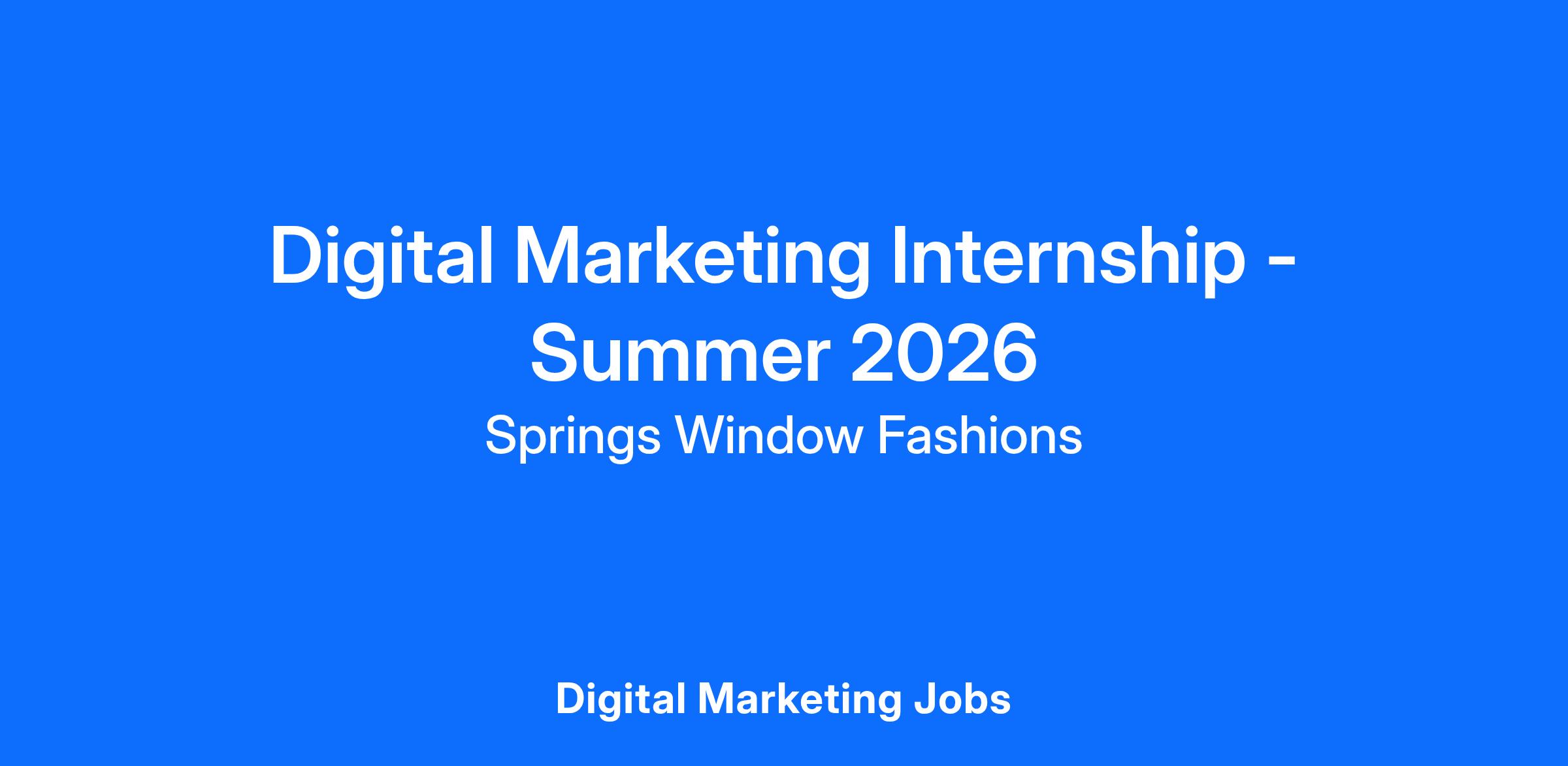 Springs Window Fashions is looking for a motivated and hardworking individual to join our Commercial Marketing Team! This Internship provides an exciting opportunity to assist the team with project support while providing valuable work experience related to your chosen field of study. Our paid internship program is known for having in-depth, challenging project work with cross-functional teams, as well as professional development, job shadowing and other growth opportunities.