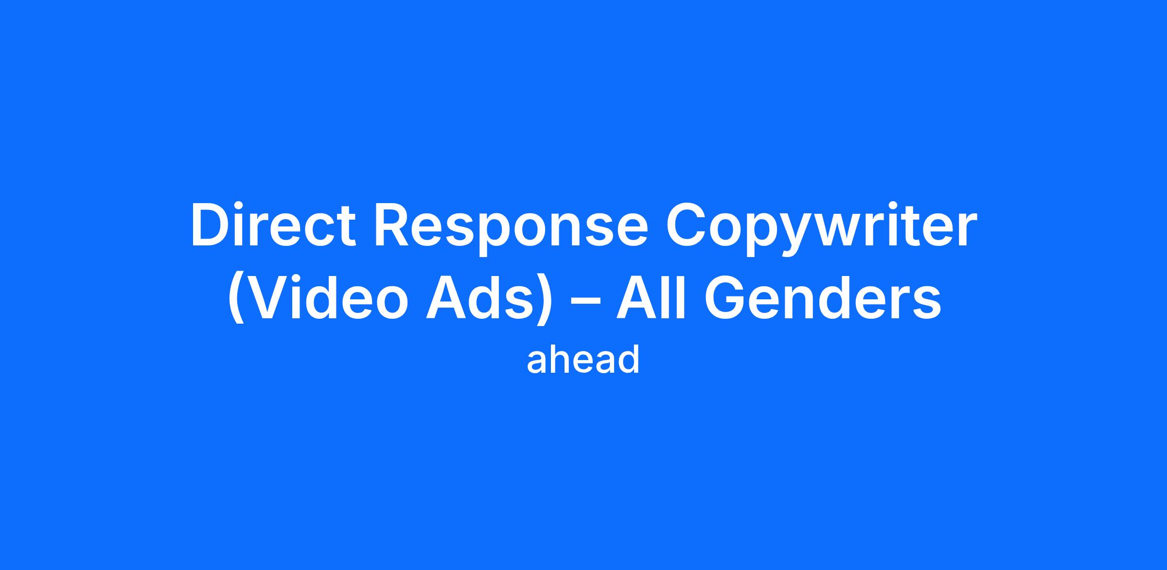 Als Direct Response Copywriter (Video Ads) – All Genders bist du verantwortlich für die Entwicklung und das Schreiben von Social-First Video-Ads, die Aufmerksamkeit catchen, Emotionen auslösen und verkaufen.