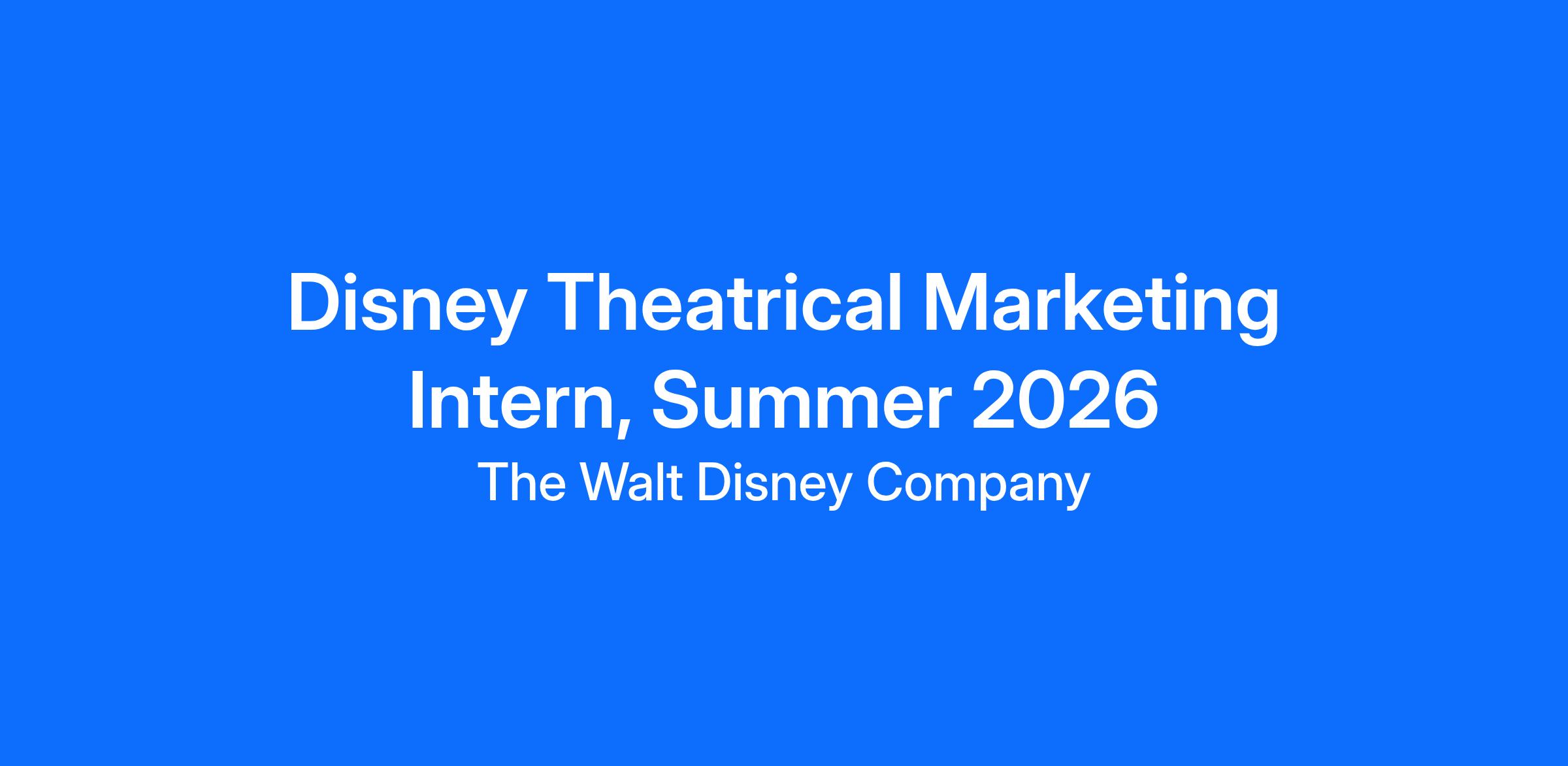 Disney Theatrical Marketing Intern, Summer 2026Req ID:
