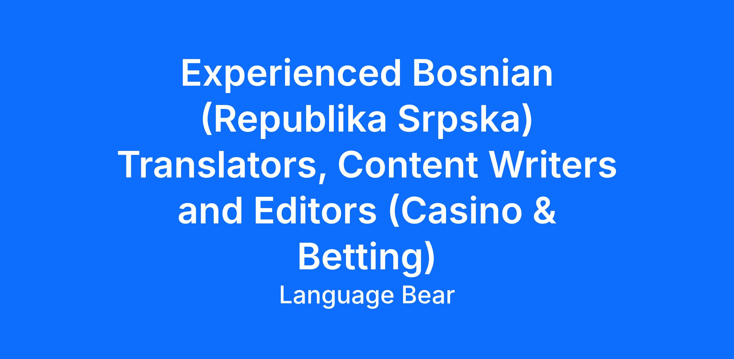 Native Bosnian (Republika Srpska) Translators, Writers and Editors for Casino & Betting Projects