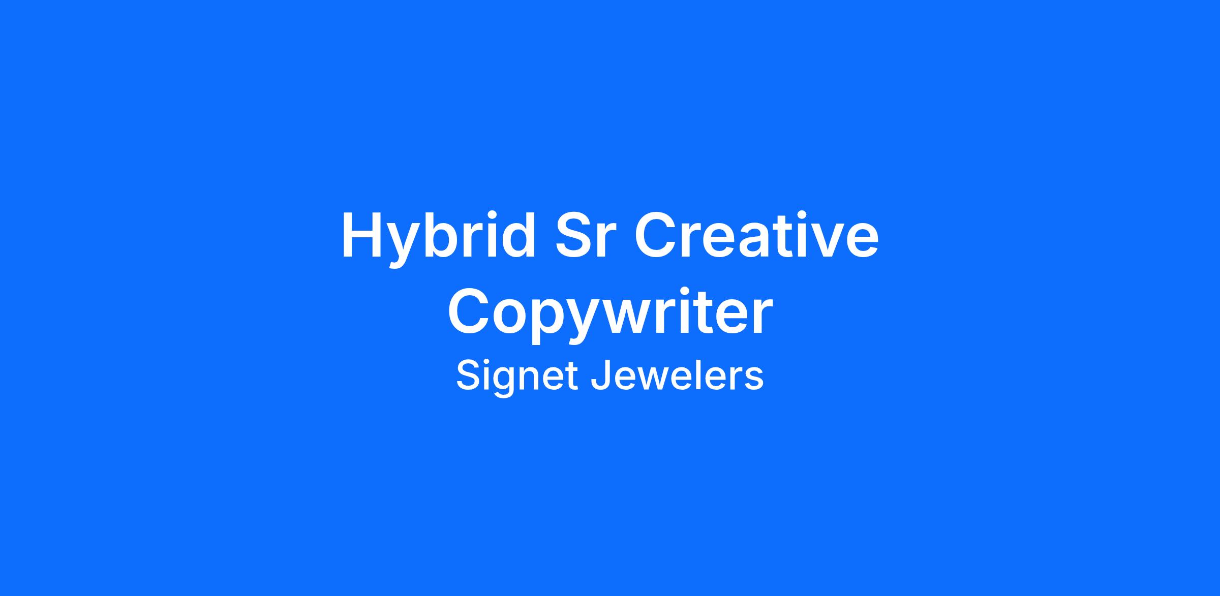 HYBRID Opportunity in DFW, TXWe are looking for an experienced and enthusiastic wordsmith to join the Signet Marketing team, supporting Zales and Banter, with a passion for developing impactful and engaging messaging. The Style Brands Senior Copywriter will help bring campaigns to life through compelling copy across both evergreen and one-off initiatives.