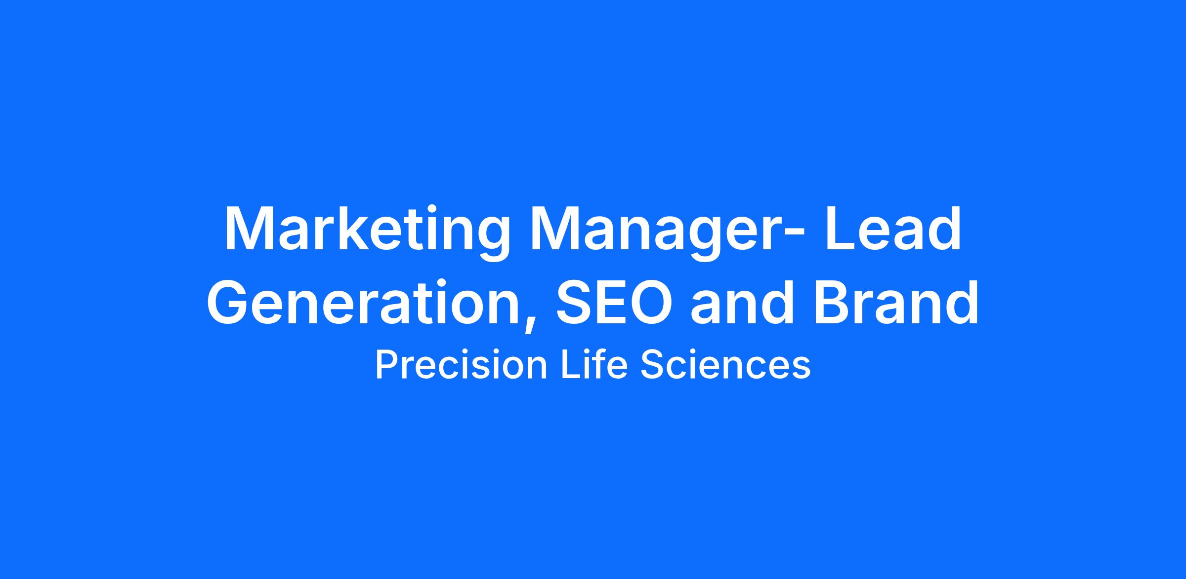 Marketing Manager – Lead Generation, SEO & Brand