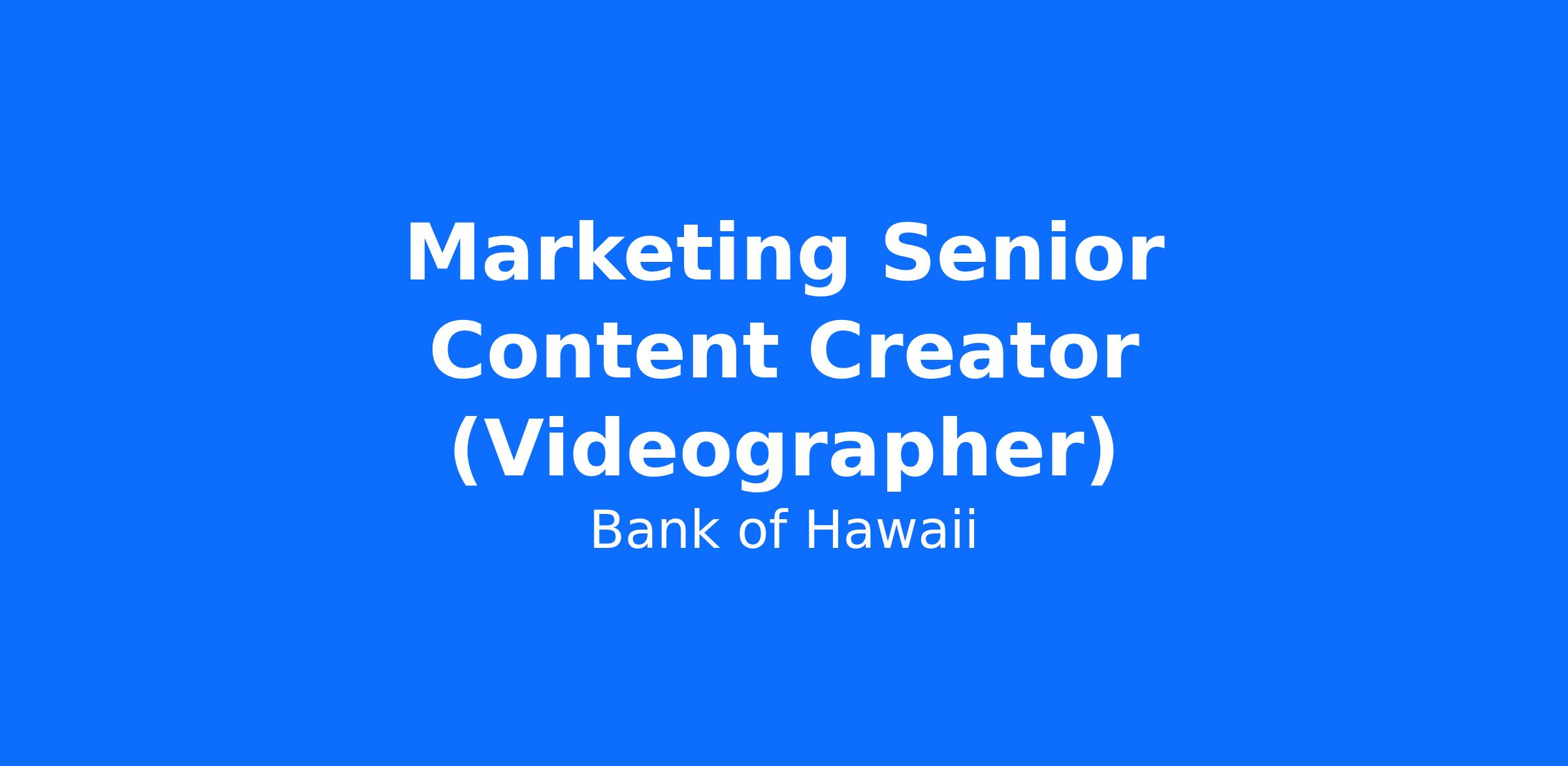Marketing Senior Content Creator (Videographer)