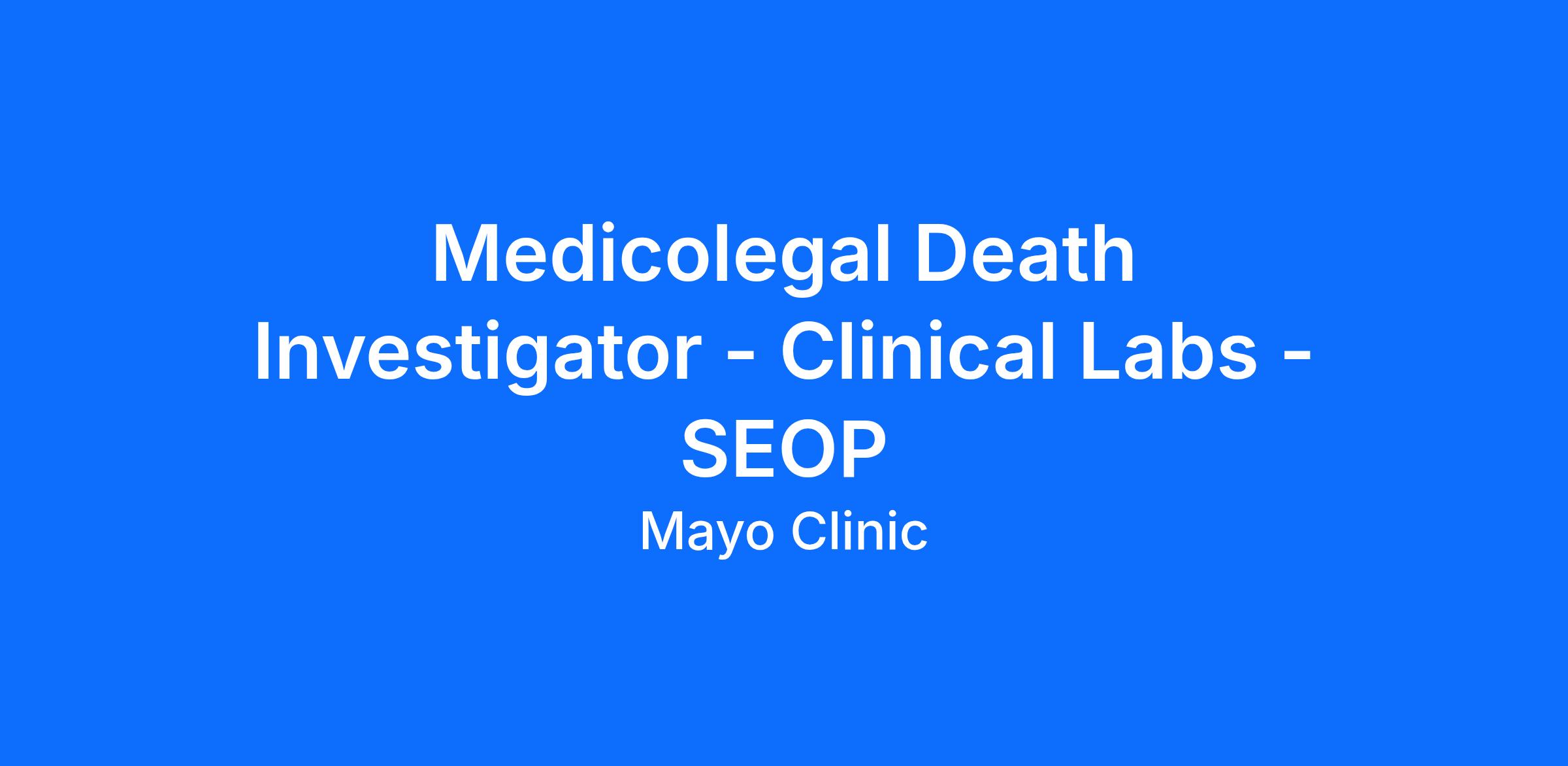 The Summer Employment Opportunity Program (SEOP) provides temporary summer employment opportunities to children, step-children and spouses of Mayo Clinic employees enrolled in a college degree granting program of study, and is intended to help supervisors accommodate employee vacation requests when seasonal work volumes are high. As a Medicolegal Death Investigator, you will be conducting death investigations on an on-call basis for the Winona area under the jurisdiction of the county Medical Examiner (ME). You will respond quickly to potentially traumatic and/or disturbing death scenes and conduct examinations of decedent, confirming death, and securing decedent and property on their person. You will actively partner with team members by fostering an inclusive work environment and respecting others with different backgrounds, experiences and perspectives.