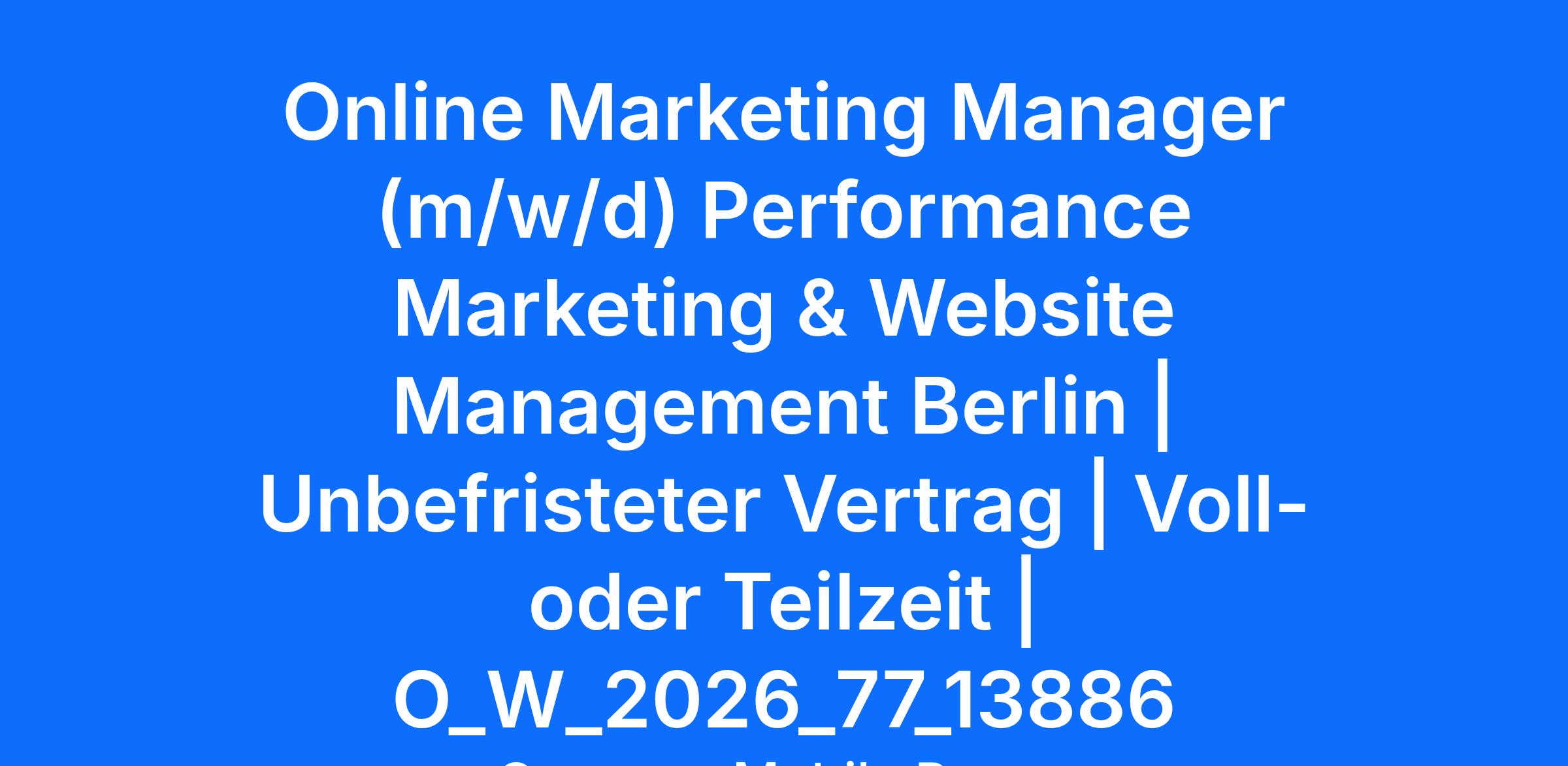 Für die digitale Darstellung und Vermarktung unserer Geschäftsfelder suchen wir einen Online Marketing Manager (m/w/d) mit Schwerpunkt Performance Marketing, Website Management und produktnahem Vertrieb.