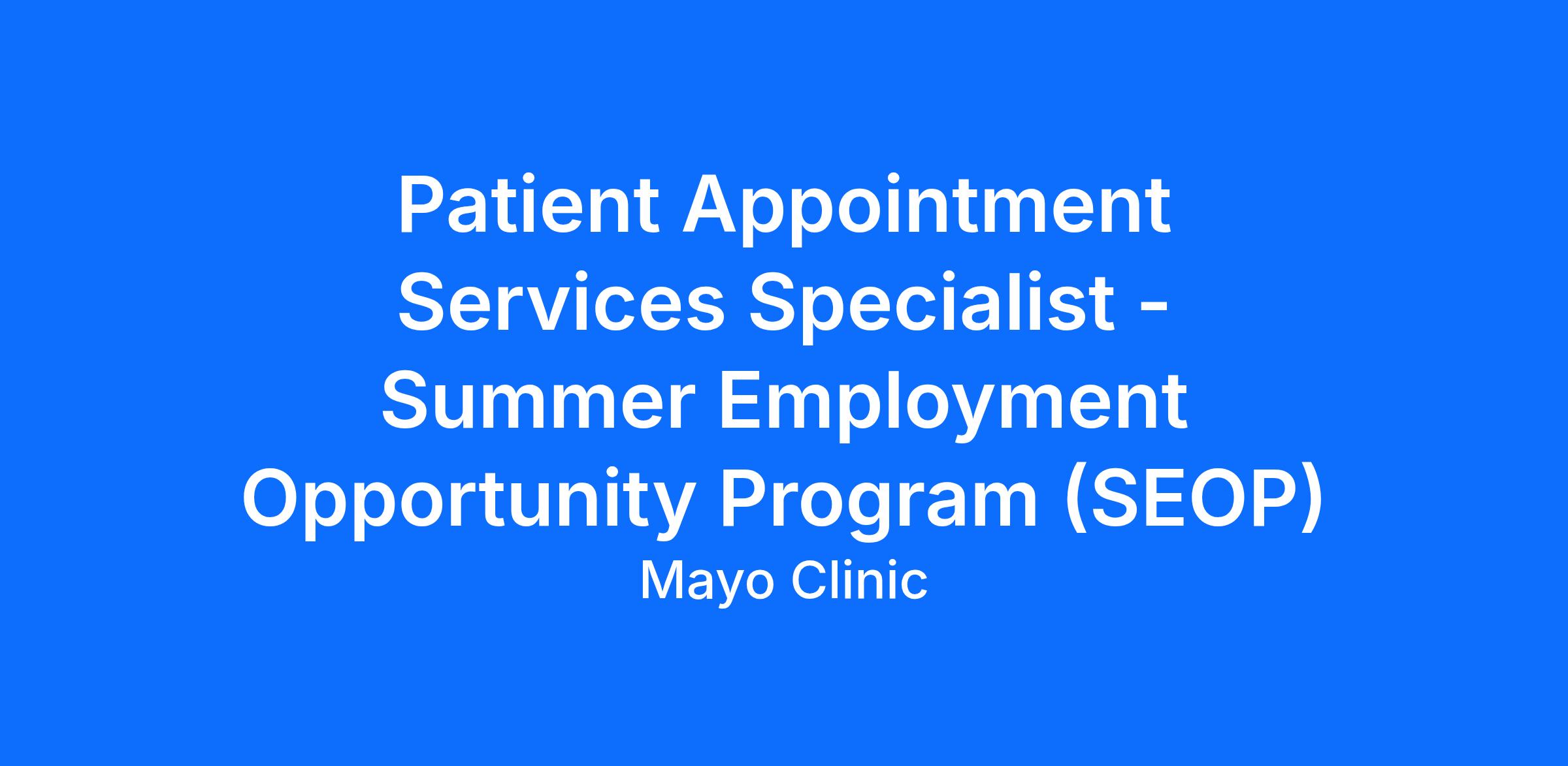 The Summer Employment Program provides summer employment opportunities to children, step-children and spouses of Mayo Clinic employees enrolled in a degree granting program of study and is intended to help supervisors accommodate employee vacation requests when seasonal work volumes are high. Position is temporary.