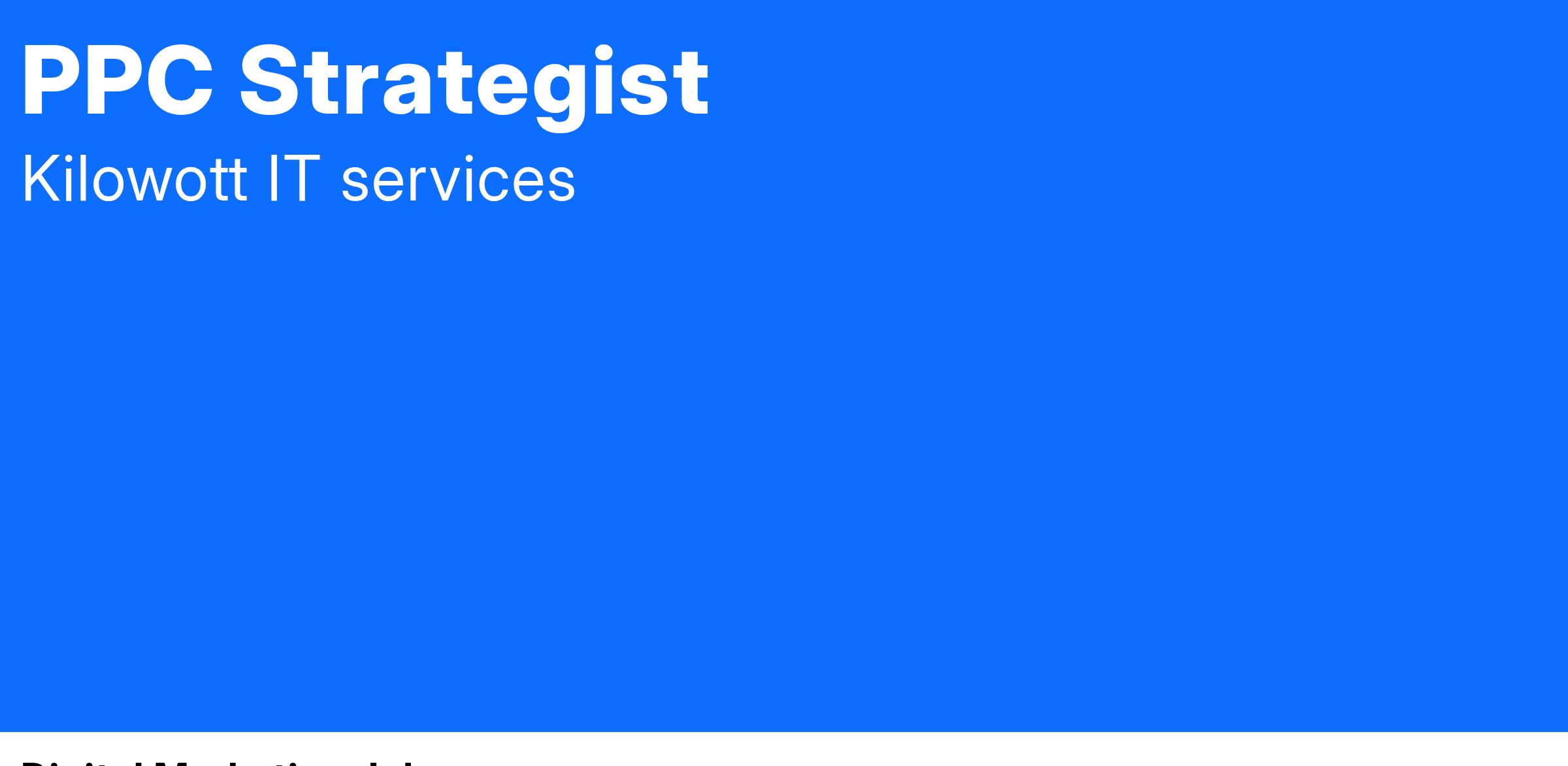 At Kilowott, we don’t just run ads — we architect digital journeys that convert. We’re on the lookout for a performance-obsessed PPC Strategist who eats ROAS for breakfast and dreams in dashboards. If you're the kind of person who can laser-target an audience while juggling Google, Meta, LinkedIn, TikTok, Snapchat, Bing, and X Ads without breaking a sweat — we want you on our side of the table.