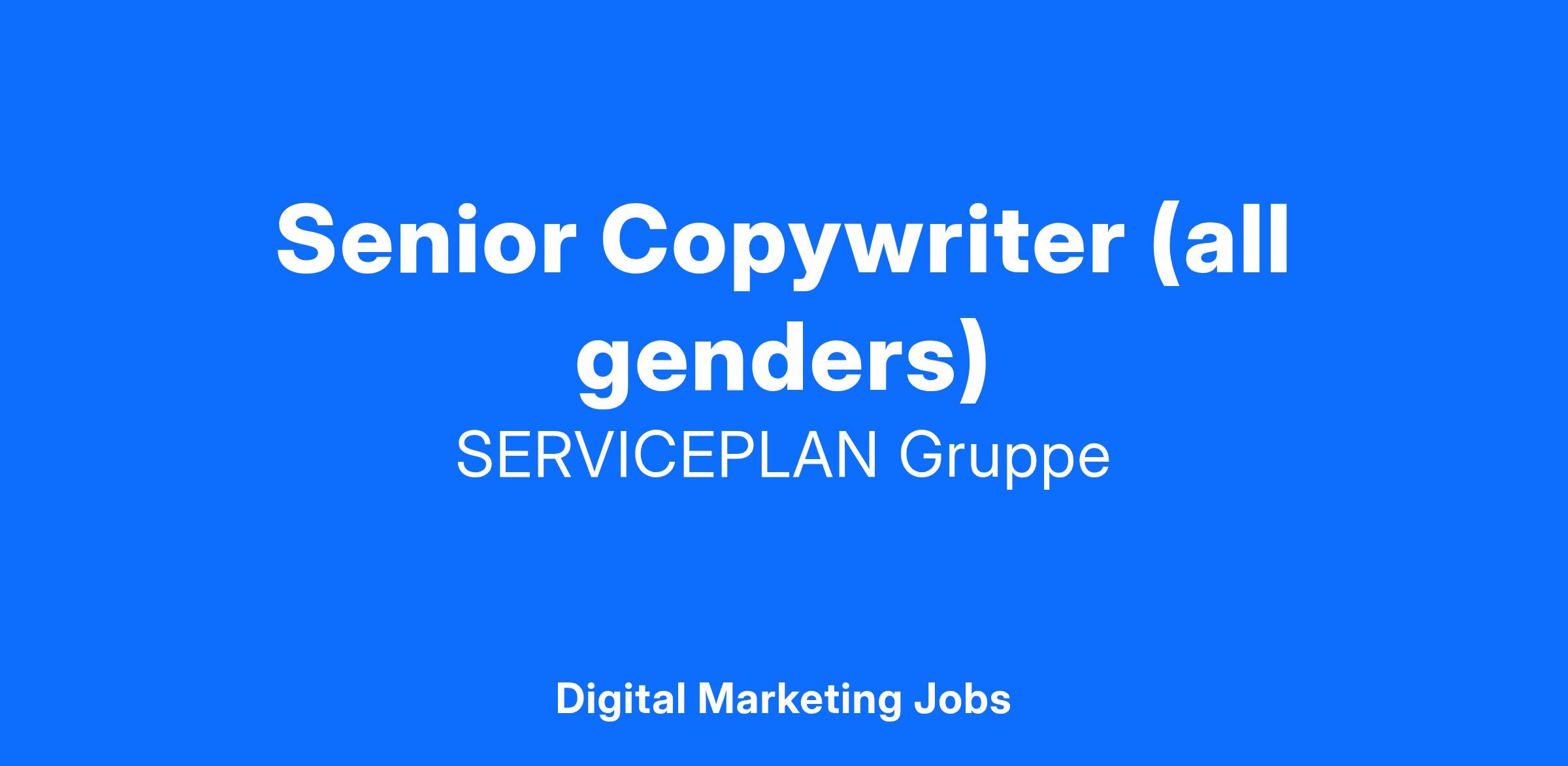 Zum nächstmöglichen Zeitpunkt suchen wir in Vollzeit einen Senior Copywriter (all genders) für eine unsere Serviceplan Campaigns.