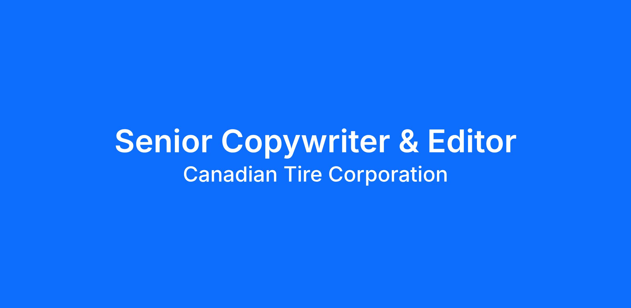 We’re looking for a Senior Copywriter/Editor to join Canadian Tire’s In‑House Content & Creative team—a copy creative who brings editorial rigour, a sharp instinct for brand storytelling and a clear point of view on what great retail and ecommerce copy looks like.