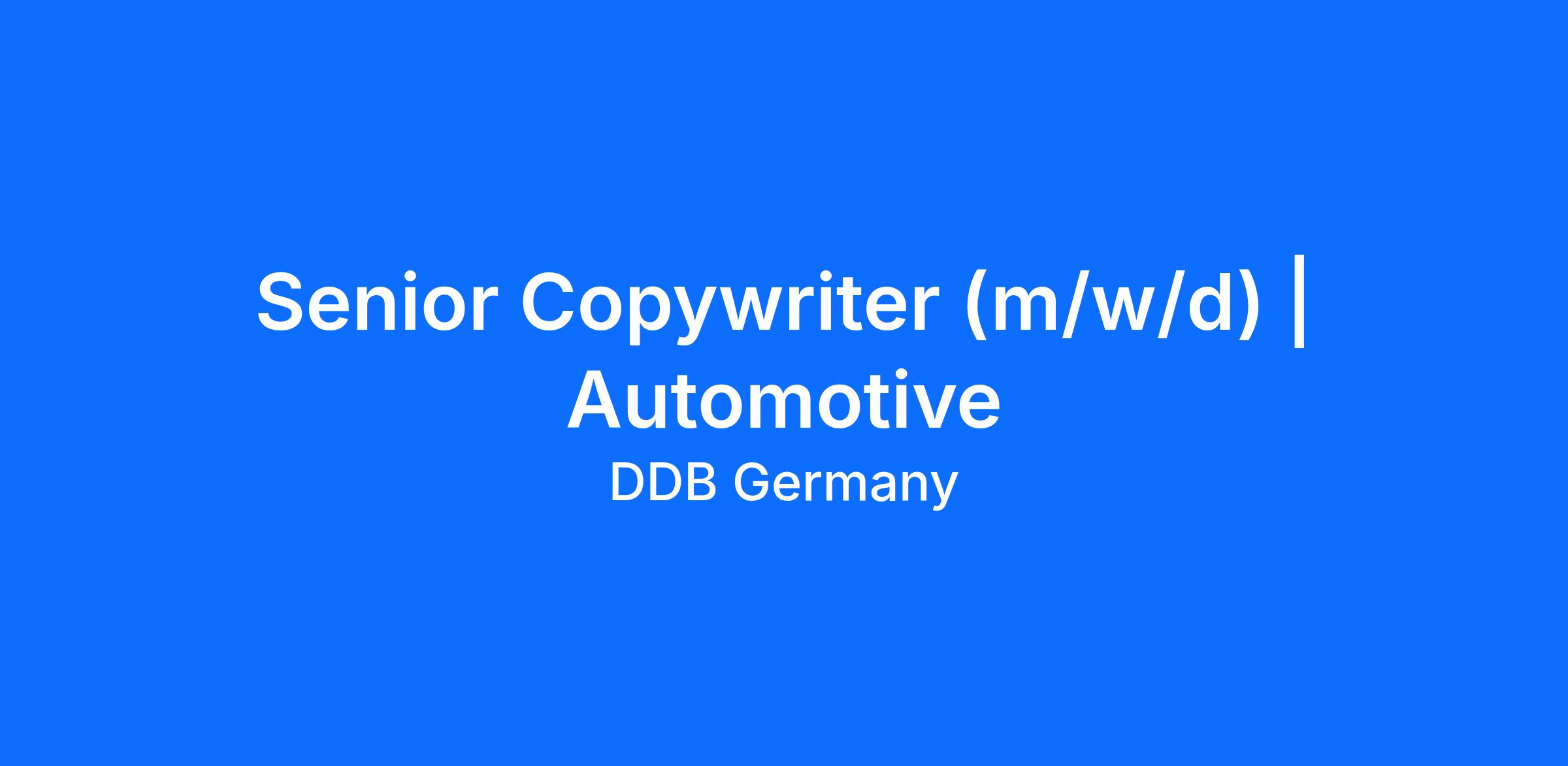 DDB ist eine der führenden Kreativagenturen Deutschlands mit Standorten in Berlin, Düsseldorf, Hamburg, Frankfurt und München. Zu den Kunden der DDB in Deutschland zählen bekannte Marken wie Volkswagen, Deutsche Telekom, Warsteiner, Lufthansa, EON, Seat / Cupra, Volksbanken Raiffeisenbanken, IKEA Österreich und viele weitere. DDB ist eine Agentur der DDB Worldwide und Teil der Omnicom Advertising Group und gehört somit zum Omnicom Network. Das Omnicom Network beschäftigt derzeit mehr als 70.000 Mitarbeitende in mehr als 60 Ländern und hat seinen Hauptsitz in New York.