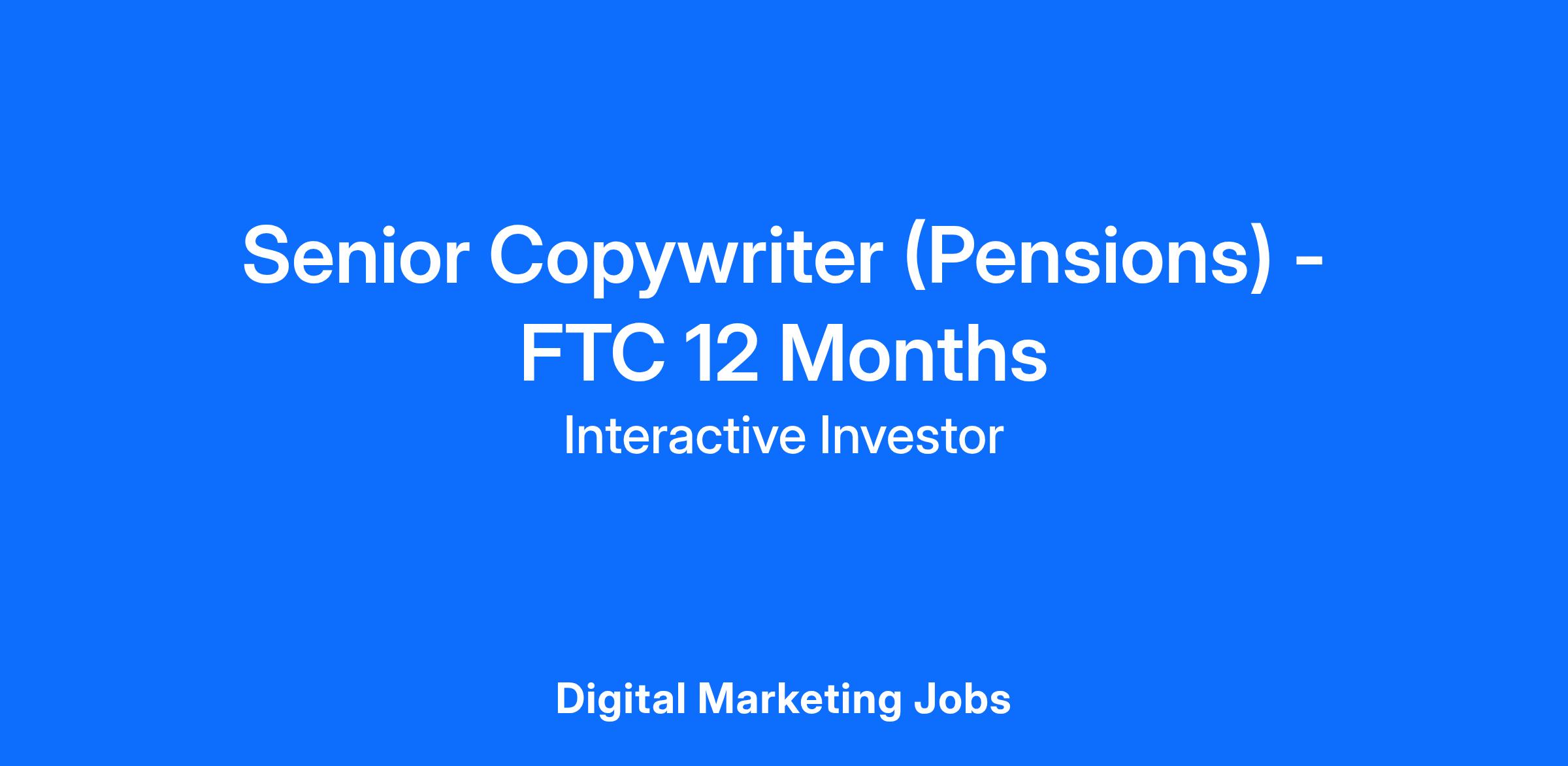 We are looking for an experienced Senior Copywriter (Pensions) to join our content team. The ideal candidate will have a deep understanding of pensions, including SIPPs (Self-Invested Personal Pensions), retirement planning, and pension regulations.
