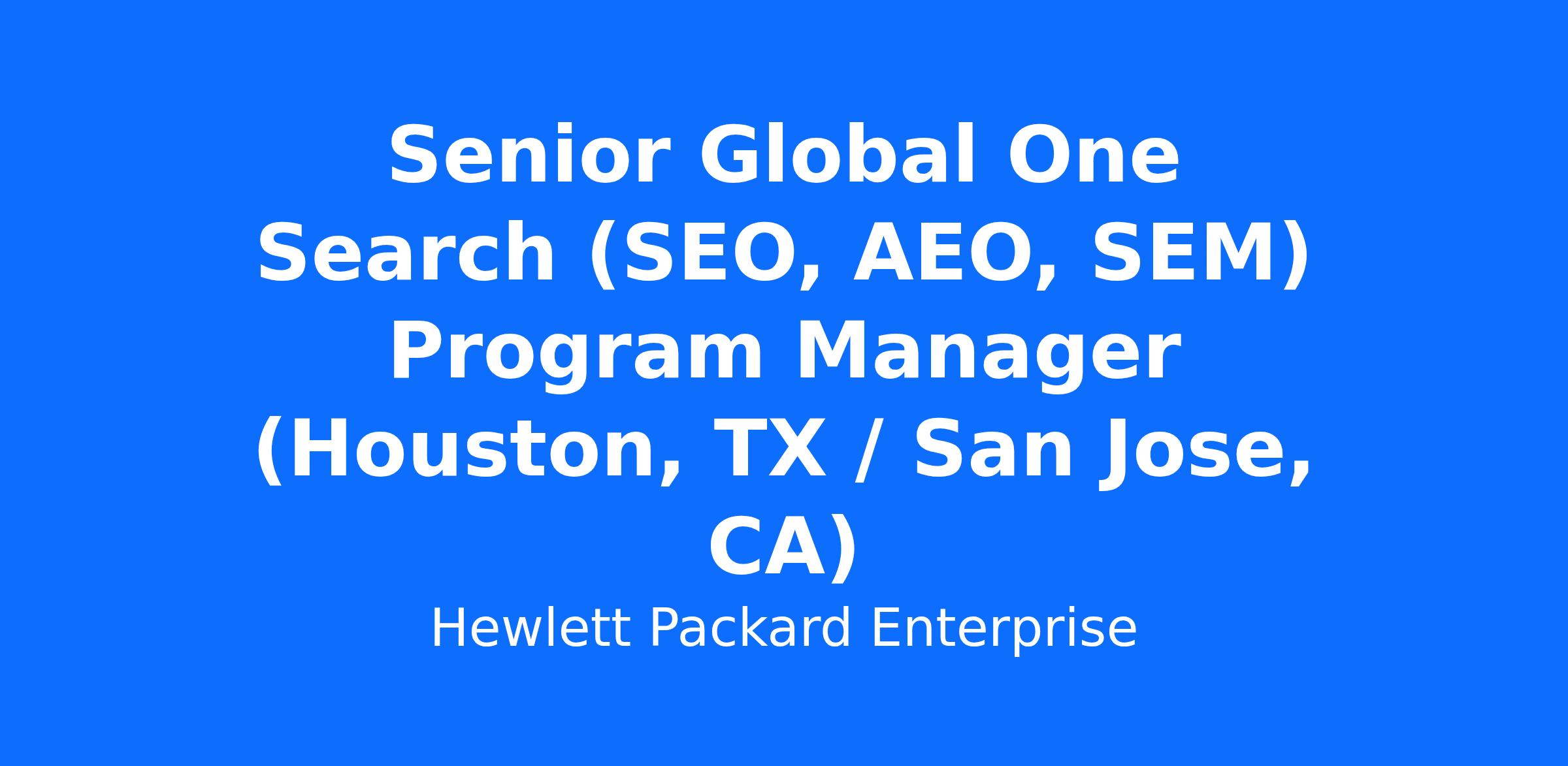 Senior Global One Search (SEO, AEO, SEM) Program Manager (Houston, TX / San Jose, CA)
