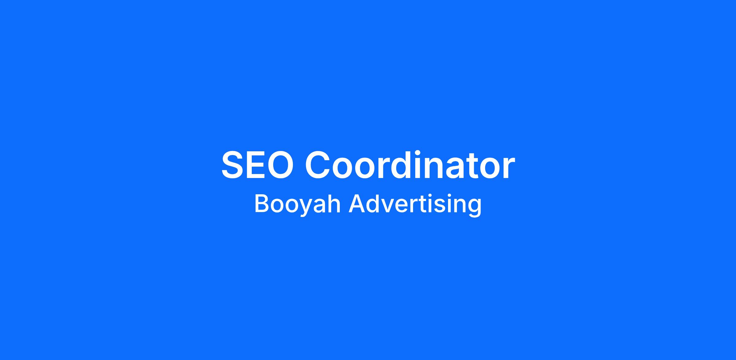 DescriptionBooyah Advertising is seeking a driven, detail-oriented, full-time SEO Coordinator to assist in all aspects of executing clients’ organic media campaigns. Responsibilities include research, execution, reporting, and supporting organic strategy.