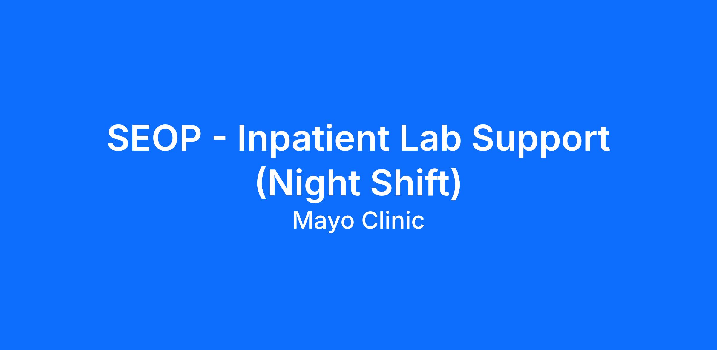 Inpatient: Looking for an opportunity to see firsthand how Mayo’s phlebotomy labs play an integral role in a patient’s life her at Mayo Clinic? Phlebotomy has been said to be the gateway to the body and here at Mayo, lab work is a vital part of the treatment for a patient in the hospital. We are looking for a motivated and dedicated individual to assist in our busy and fast-paced environment. You will get to experience the daily pace of lab life, see the practical application of helping diagnose patients in the hospital setting.