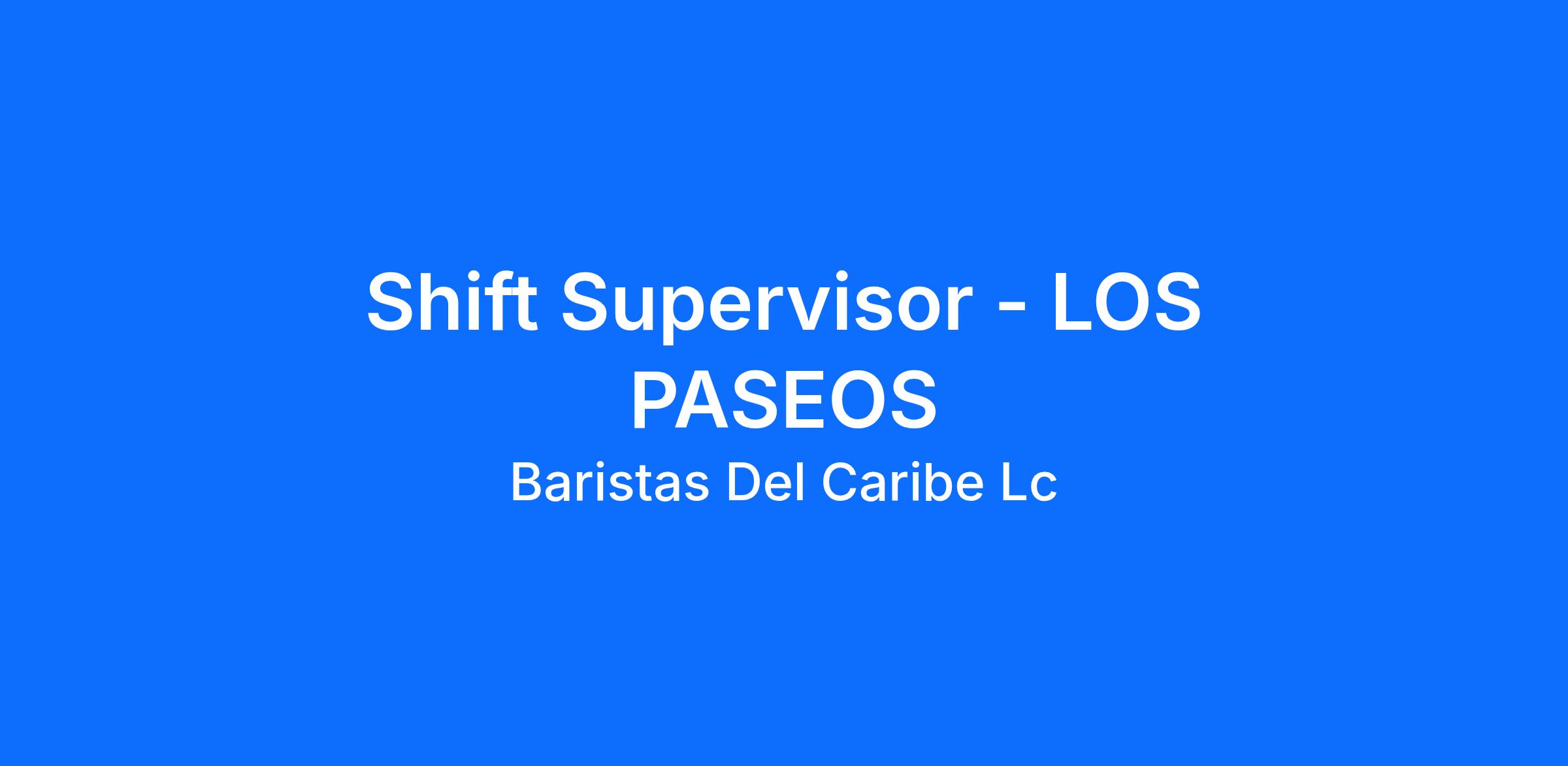 ¡Se buscan personas energéticas como tú para nuestra tienda de Los Paseos! Nuestros Supervisores de Turno contribuyen al éxito de Starbucks al asistir al gerente de tienda durante los turnos. Esto incluye estar a cargo de la tienda durante el turno, apoyar a los baristas, entrenar a los nuevos miembros del equipo y delegar tareas. Crean la experiencia Starbucks al brindar un servicio rápido, entregar productos y bebidas de calidad y manteniendo un ambiente limpio y cómodo.