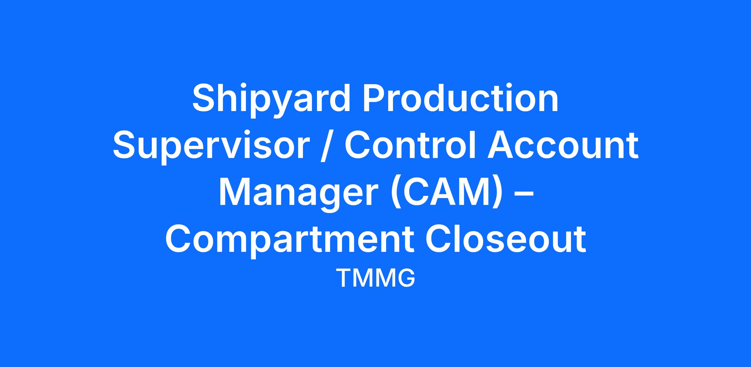 The Shipyard Production Supervisor / Control Account Manager (CAM) – Compartment Closeout is responsible for end-to-end ownership of assigned compartments, ensuring execution, sequencing, and closeout readiness align with vessel construction milestones.