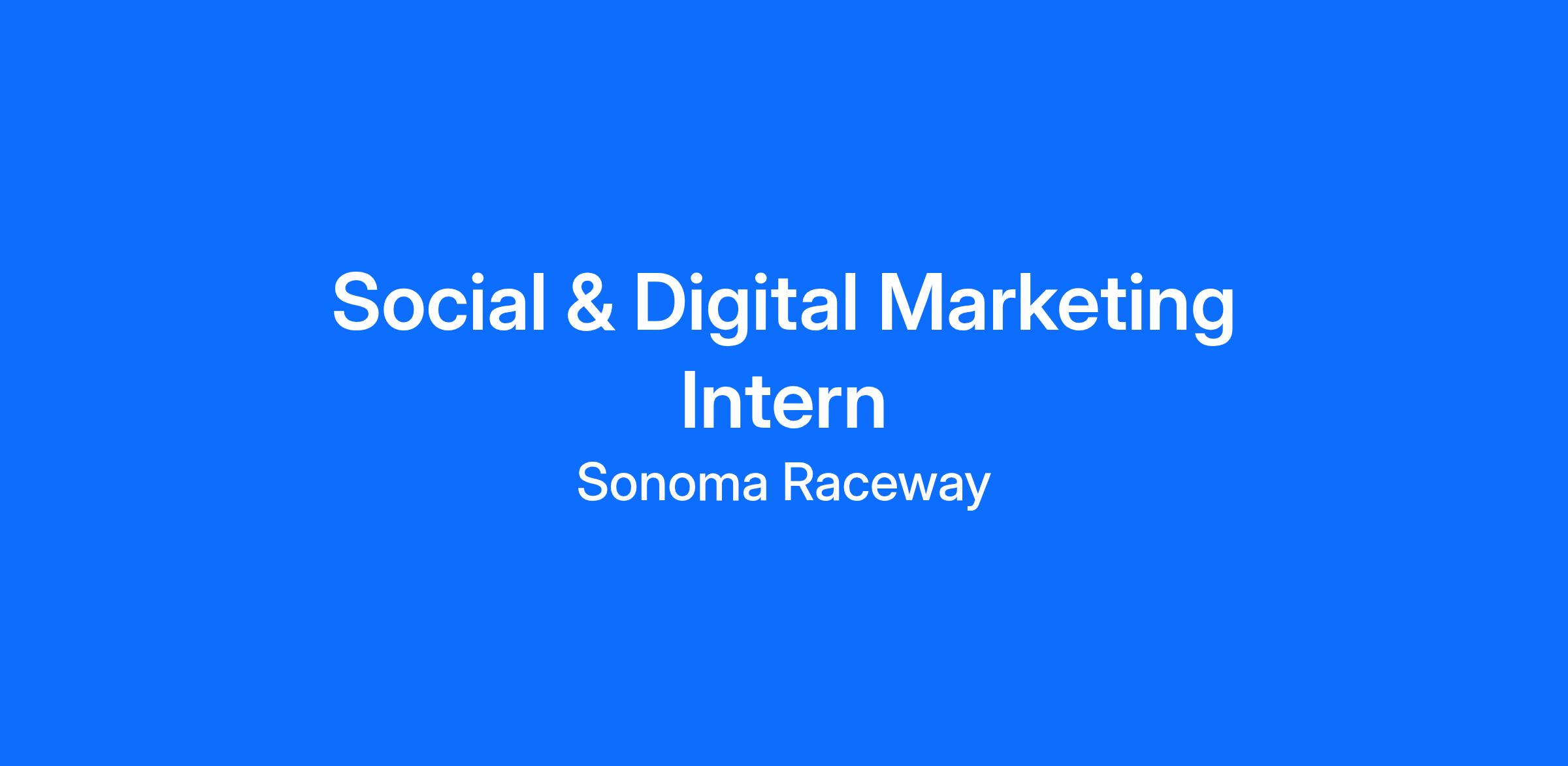 Sonoma Raceway is seeking an enthusiastic and motivated Social & Digital Marketing Intern to join our Marketing & Communications team this summer. This paid internship offers hands-on experience in social media management, live event coverage, digital content creation, and event marketing within a fast-paced motorsports environment. The intern will work closely with the marketing team to support the planning, execution, and promotion of major race weekends and other special events at the track. This position offers an ideal opportunity for college students or recent graduates interested in pursuing a career in sports marketing, event management, or public relations.