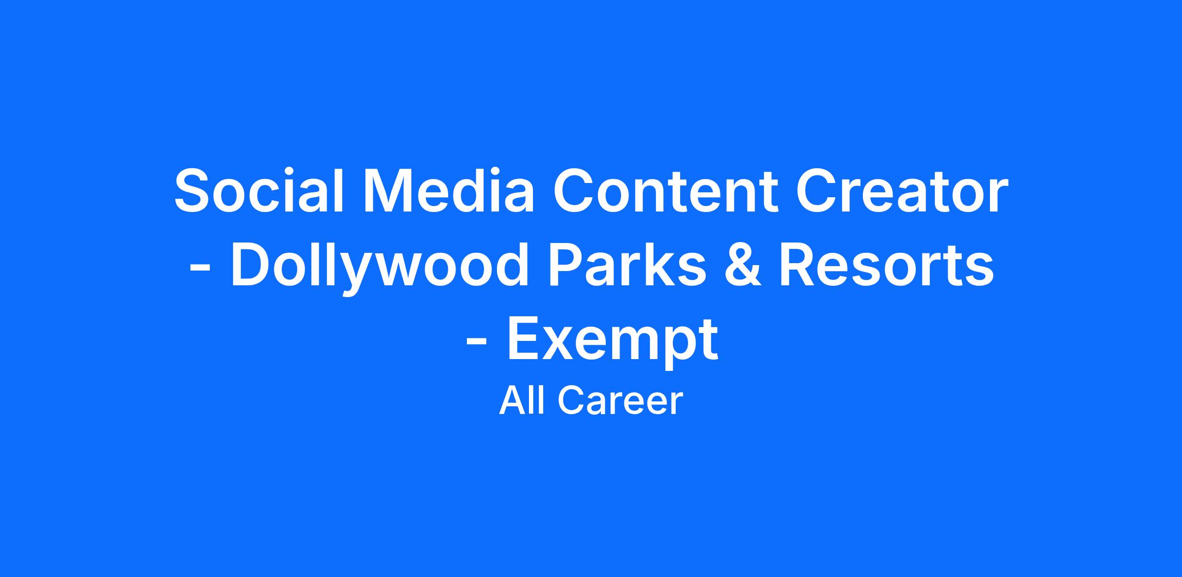 At Dollywood Parks & Resorts, we create memories worth repeating. We do this every day across all properties; all located in the Great Smoky Mountains of East Tennessee. Ask anyone who has visited Dollywood Parks & Resorts, and they will tell you this place is different. It’s not a difference that you can touch or see - it’s a difference you can feel. We are seeking a Social Media Content Creator who will embody the heart and soul of our mission of creating memories worth repeating while bringing families closer together and caring deeply about our brand. This person also brings a spirit of fun, authenticity, collaboration, creativity and genuine hospitality to the lives of our guests.