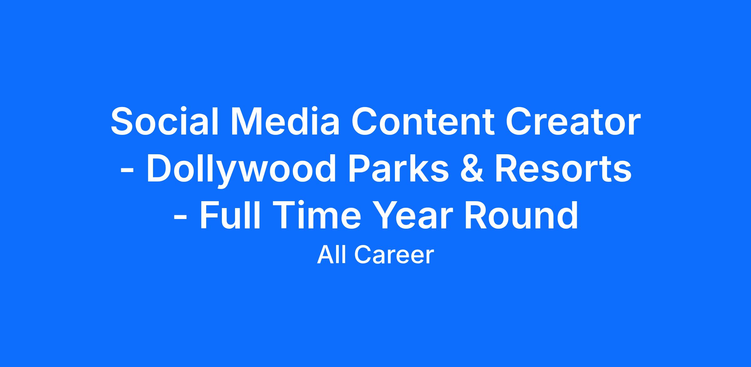 At Dollywood Parks & Resorts, we create memories worth repeating. We do this every day across all properties, all located in the Great Smoky Mountains of East Tennessee. Ask anyone who has visited Dollywood Parks & Resorts and they will tell you this place is different. It’s not a difference that you can touch or see - it’s a difference you can feel. We are seeking a Social Media Content Creator who will embody the heart and soul of our mission of creating memories worth repeating while bringing families closer together and caring deeply about our brand.