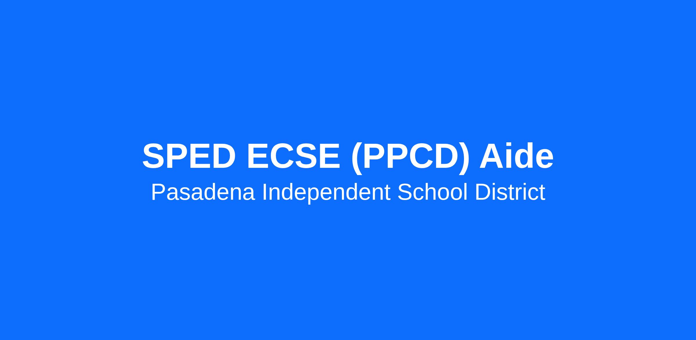 JOB TITLE: SPED ECSE (PPCD) Aide