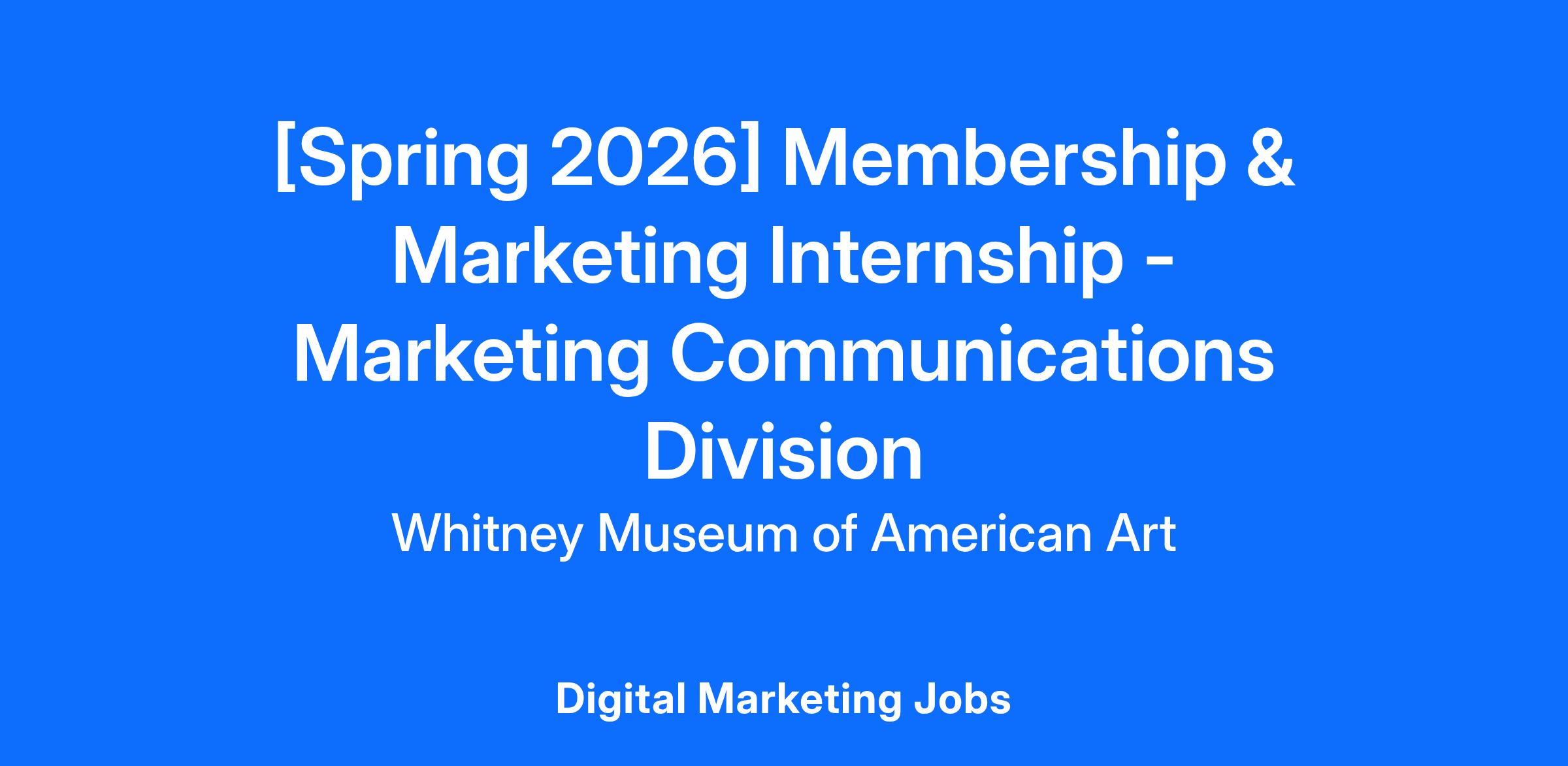 The Whitney’s Academic Year Internship program offers a semester-long paid internship for undergraduate and graduate students currently enrolled in an accredited academic program. The internship is hybrid, with some onsite work. For Spring 2026, interns commit between 16–21 hours per week over 10–12 weeks for a total of 200 hours. Interns are assigned to a specific department at the Museum for the duration of the internship.The Whitney seeks a Marketing Intern within the Membership and Marketing Department for the Spring 2026 semester.Expected Projects & Assignments- Conduct social listening and general marketing research projects
