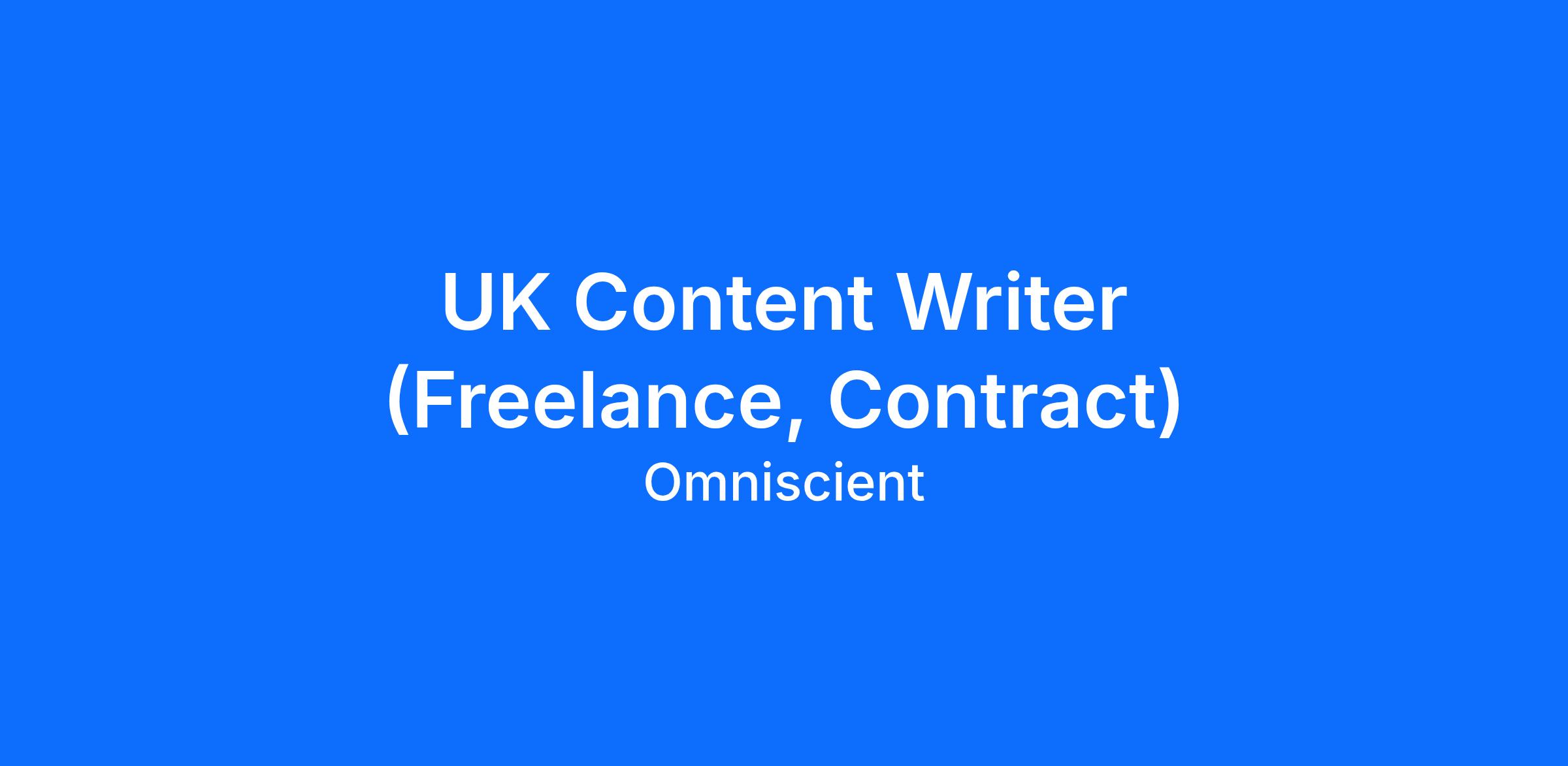 Omniscient Digital is hiring a UK-based freelance content writer to create long-form, high-quality written content for B2B SaaS clients. This is a remote, freelance role focused on writing in British English for professional audiences across industries such as procurement, compliance, operations, finance, and enterprise software.