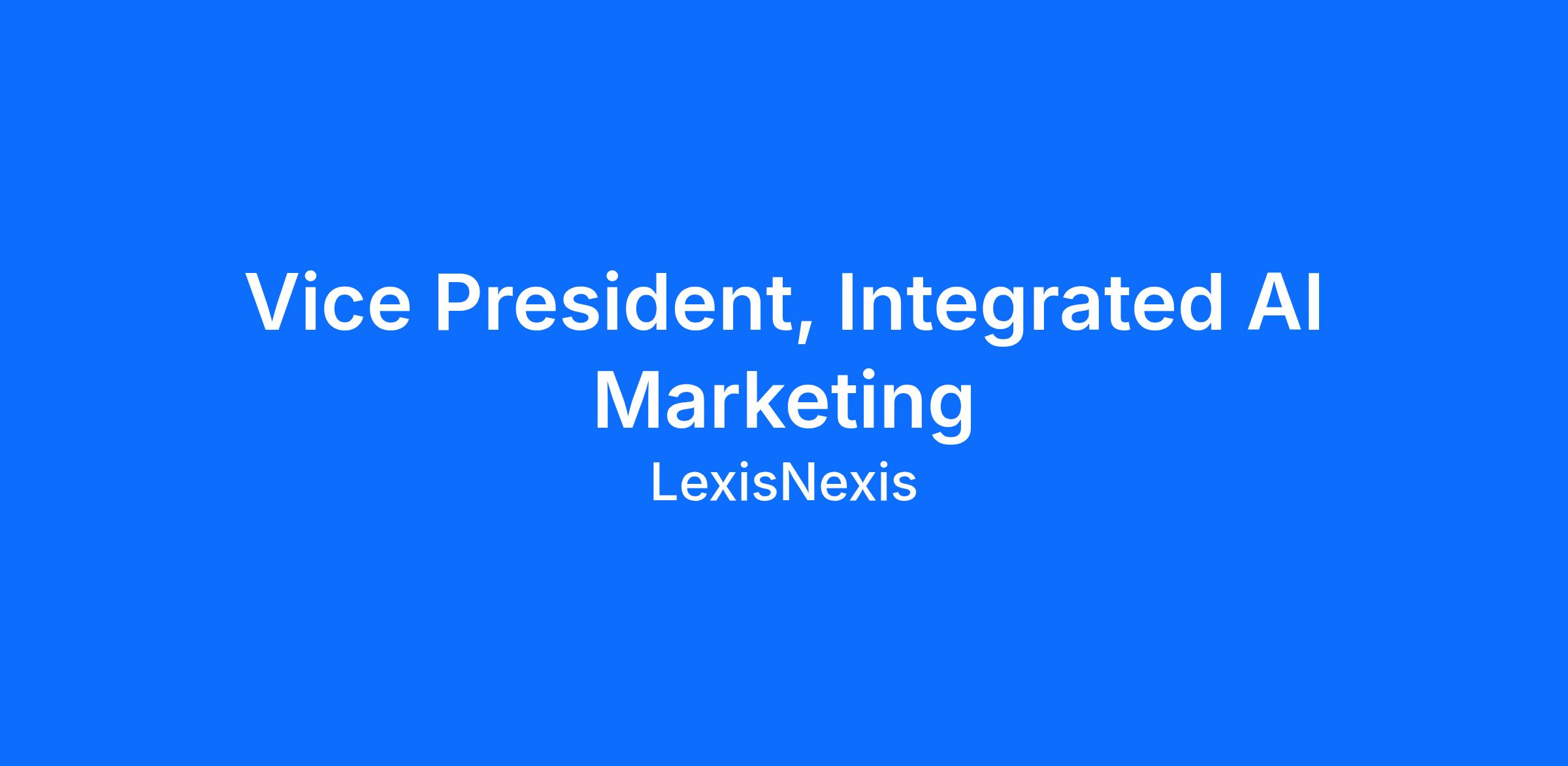 We are seeking a strategic and innovative Vice President, Integrated AI Marketing to help shape the future of digital marketing and to support long-term, data-informed decision-making at LexisNexis Legal & Professional. This role will sit at the intersection of digital marketing transformation, AI-driven insights, and organizational marketing strategy. The ideal candidate will bring expertise in digital marketing, account-based marketing (ABM), and marketing process improvements—while leveraging AI technologies to accelerate impact across programs, teams, and accounts.