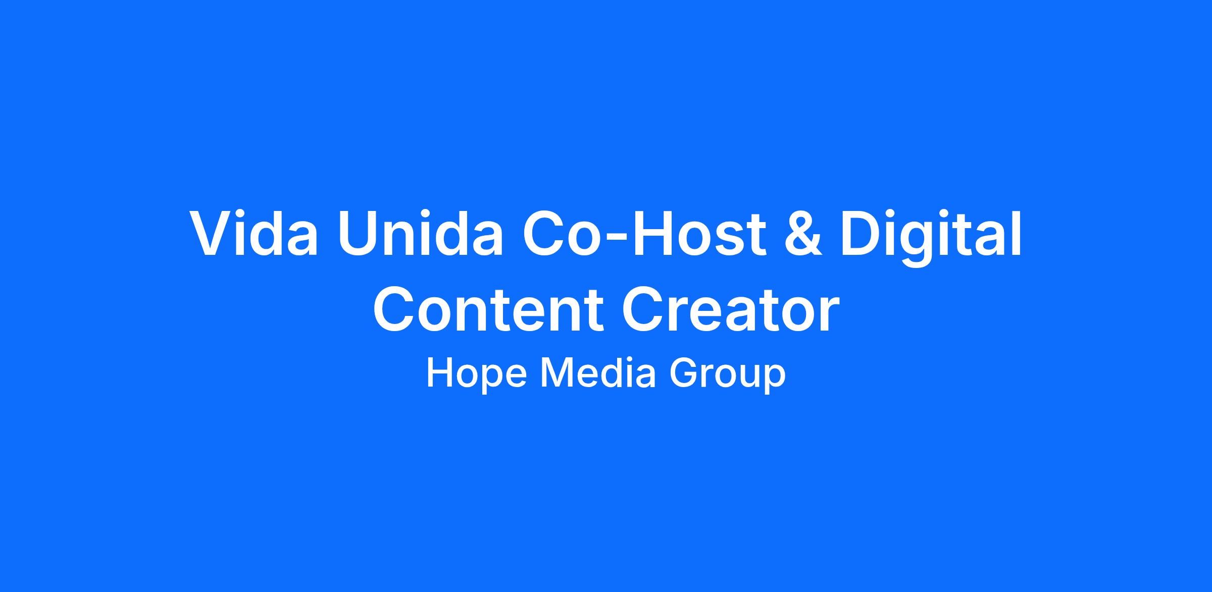 The Vida Unida Co-Host & Multimedia Content Creator is a key part of the Vida Unida programming team. This person will co-lead a dynamic, daily radio show while also creating content that reaches and connects with listeners across digital platforms. From short-form video to podcasting and social engagement, this role exists to build spiritual connection and authentic community through every form of media. The ideal candidate embraces a “digital-first and radio-centric” mindset, always thinking about how to extend content beyond the airwaves for deeper impact and broader reach.