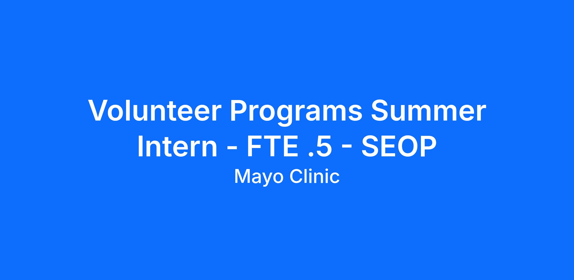 The Summer Employment Opportunity Program (SEOP) provides temporary summer employment opportunities to children, step-children and spouses of Mayo Clinic employees enrolled in a college degree granting program of study, and is intended to help supervisors accommodate employee vacation requests when seasonal work volumes are high.