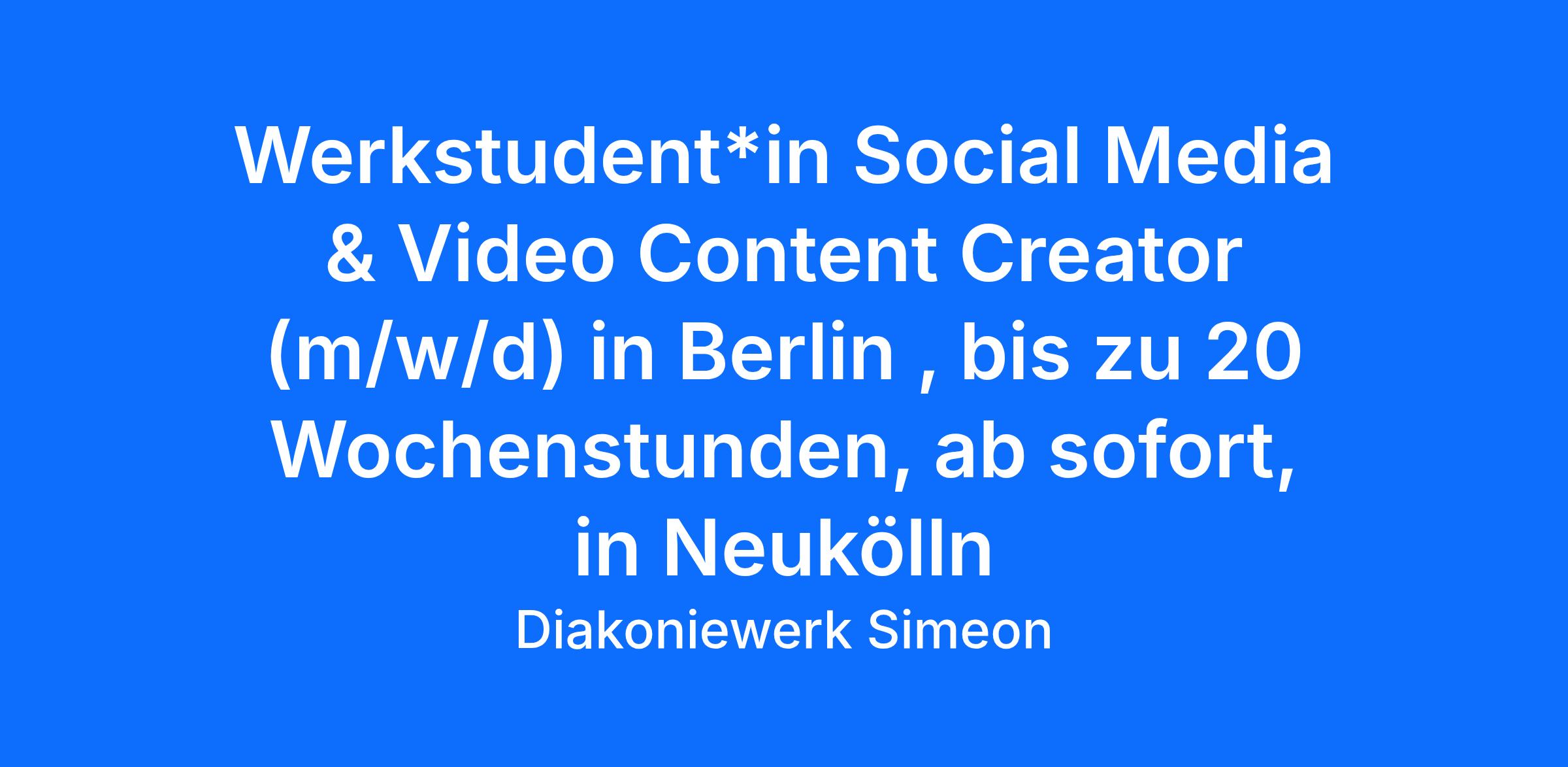 Du möchtest einen Job mit Sinn? Dann hilf uns, das Diakoniewerk Simeon mit seiner ganzen Vielfalt sichtbar zu machen - du unterstützt uns dabei im Bereich Öffentlichkeitsarbeit und Marketing. Dein Arbeitsplatz liegt im Herzen von Neukölln, nahe der U-Bahn-Station Karl-Marx-Straße.